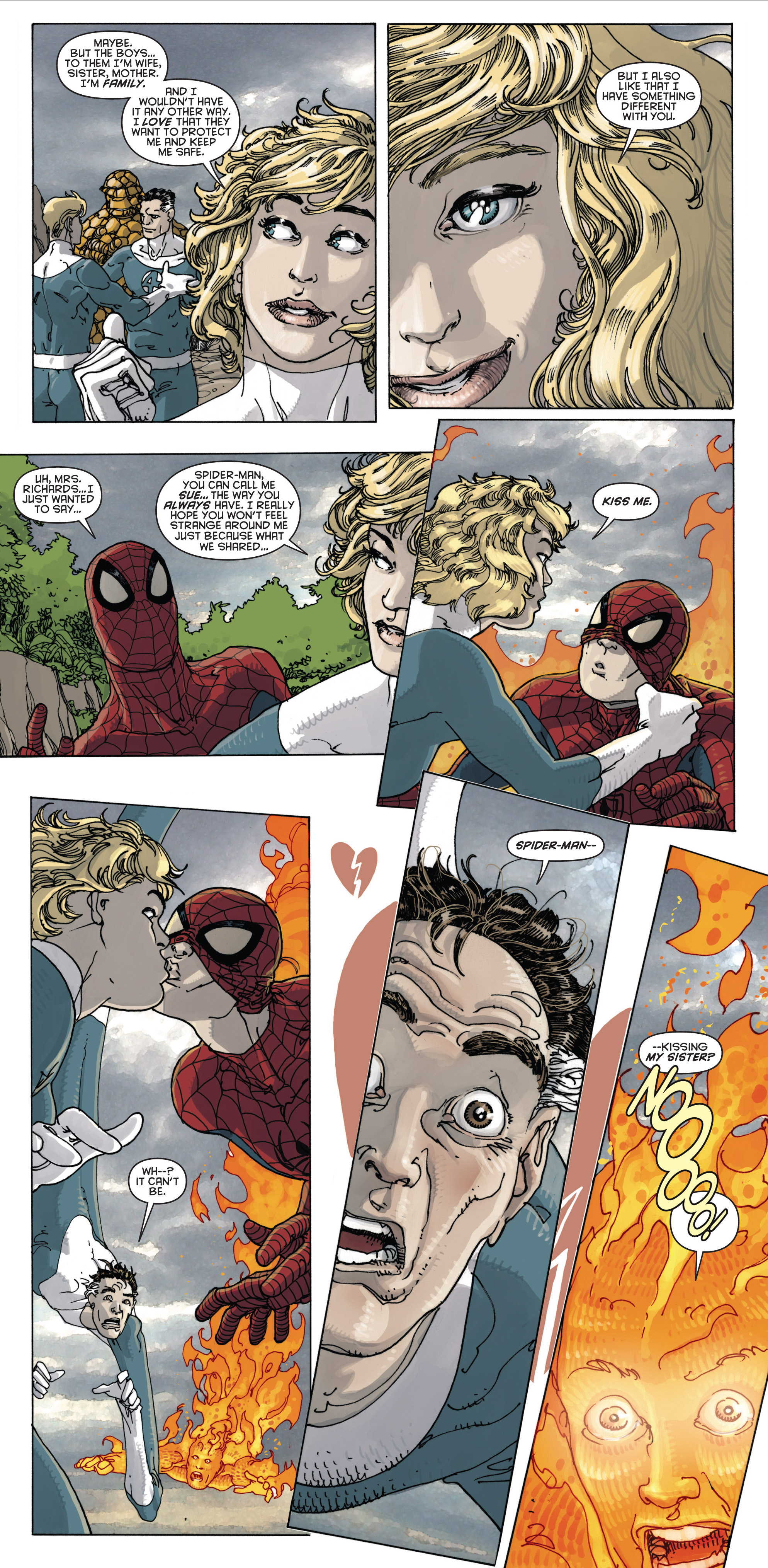 As for the stories, there may be several scenarios: >Continuation of the MK4 story What if Sue and T'Challa gave in to their feelings, and all that buildup led to the logical conclusion? The end may still be the same, but with Sue and T'Challa more satisfied and happy >Inattentive husband, Sue turns to T'Challa for some excitement This may be a lighter story about a lighthearted cheating affair, maybe some fun scenes including a clueless Reed, and not much more >Reed does something very asshole-ish, Sue leaves him for T'Challa (maybe temporarily) Reed is often known to do some fucked-up things (e.g., shooting a depowering ray at Franklin, building Clone Thor, supporting the Negative Zone prison, etc), which usually causes Sue to get angry at him and even leave him (at least temporarily). We can imagine a similar event, which may be related to Wakanda in some way, which leads to Sue leaving Reed for T'Challa, temporarily or even permanently. >Sue is just a huge slut Finally, it can be a rather OOC story where Sue is a much more morally dubious person, and decides to fuck T'Challa because why not. While OOC for Sue, the story could be sexy and fun.