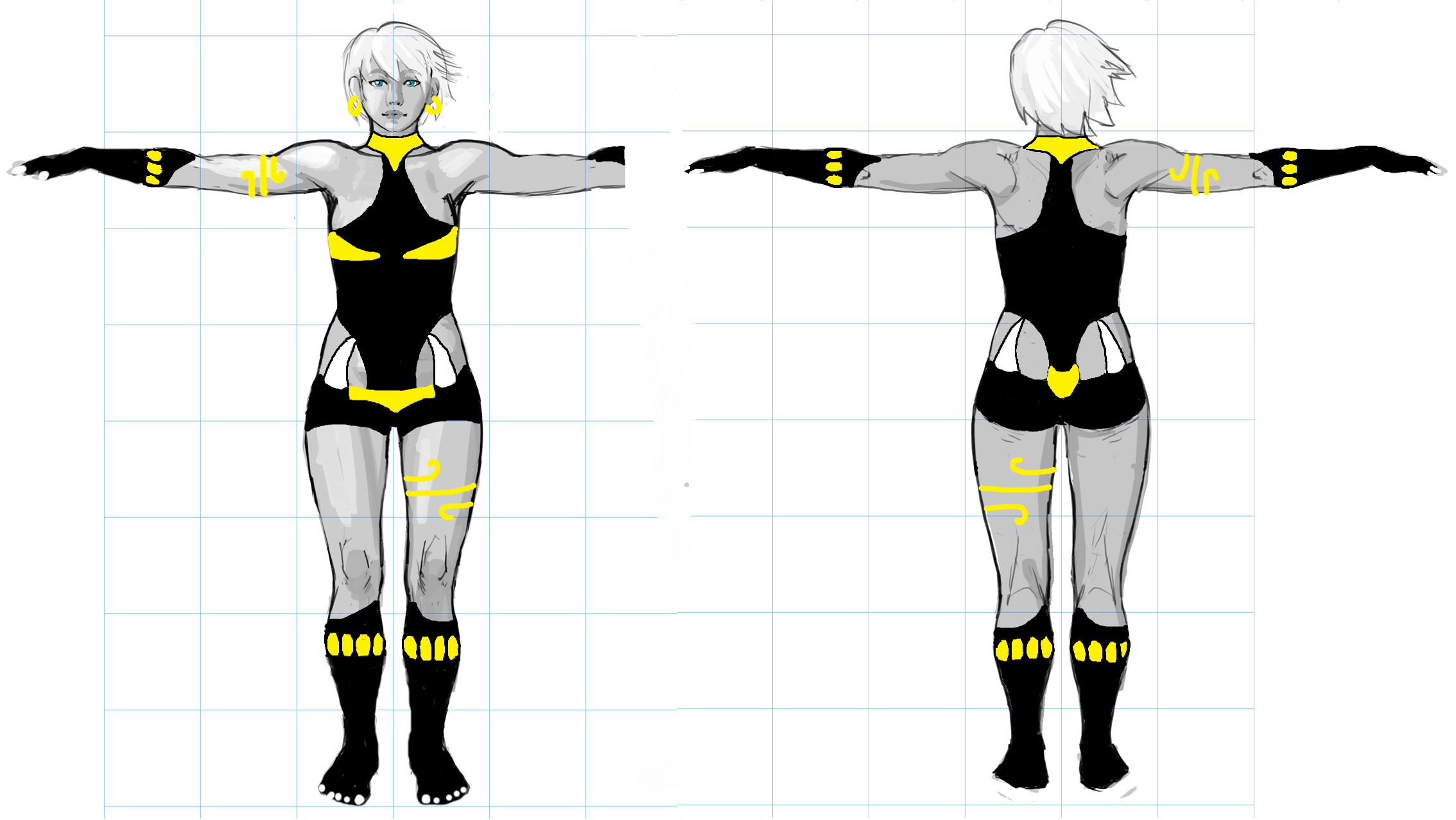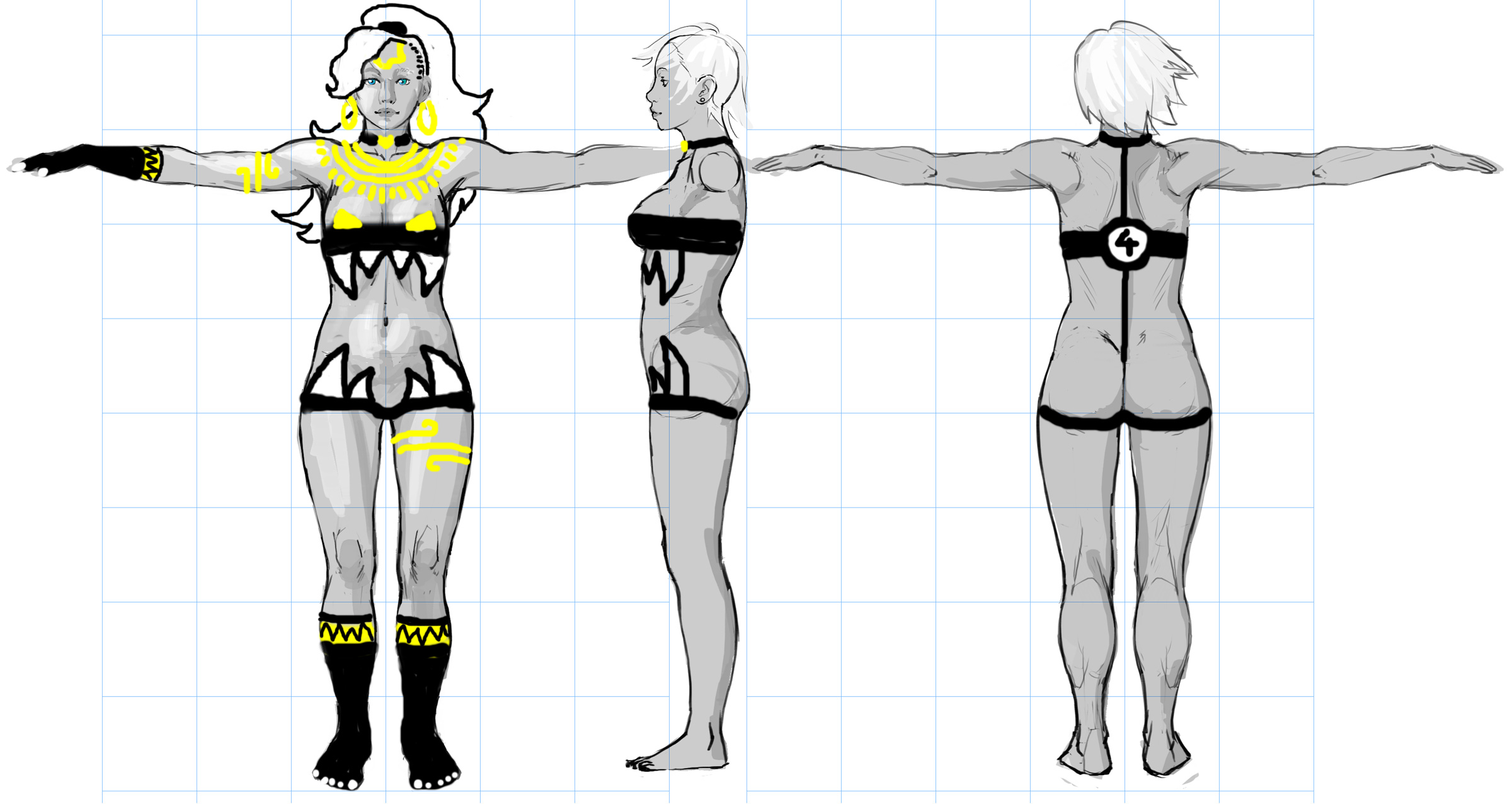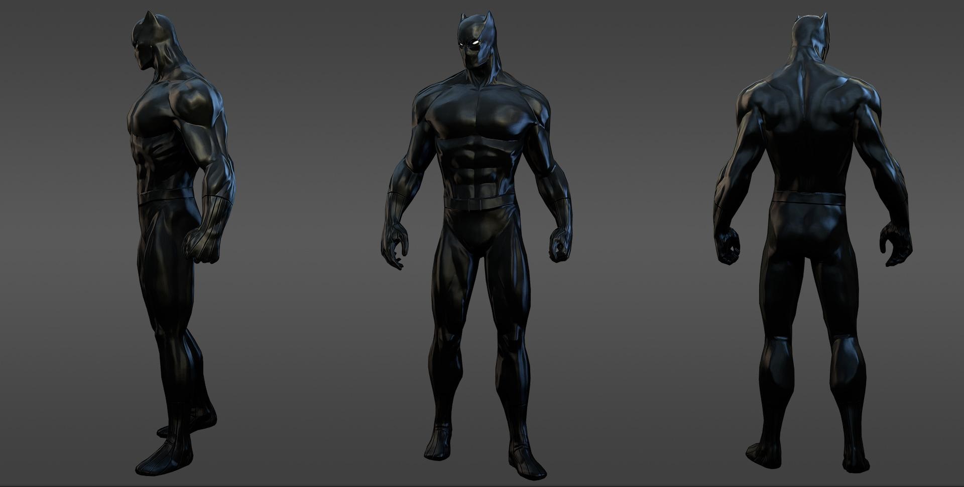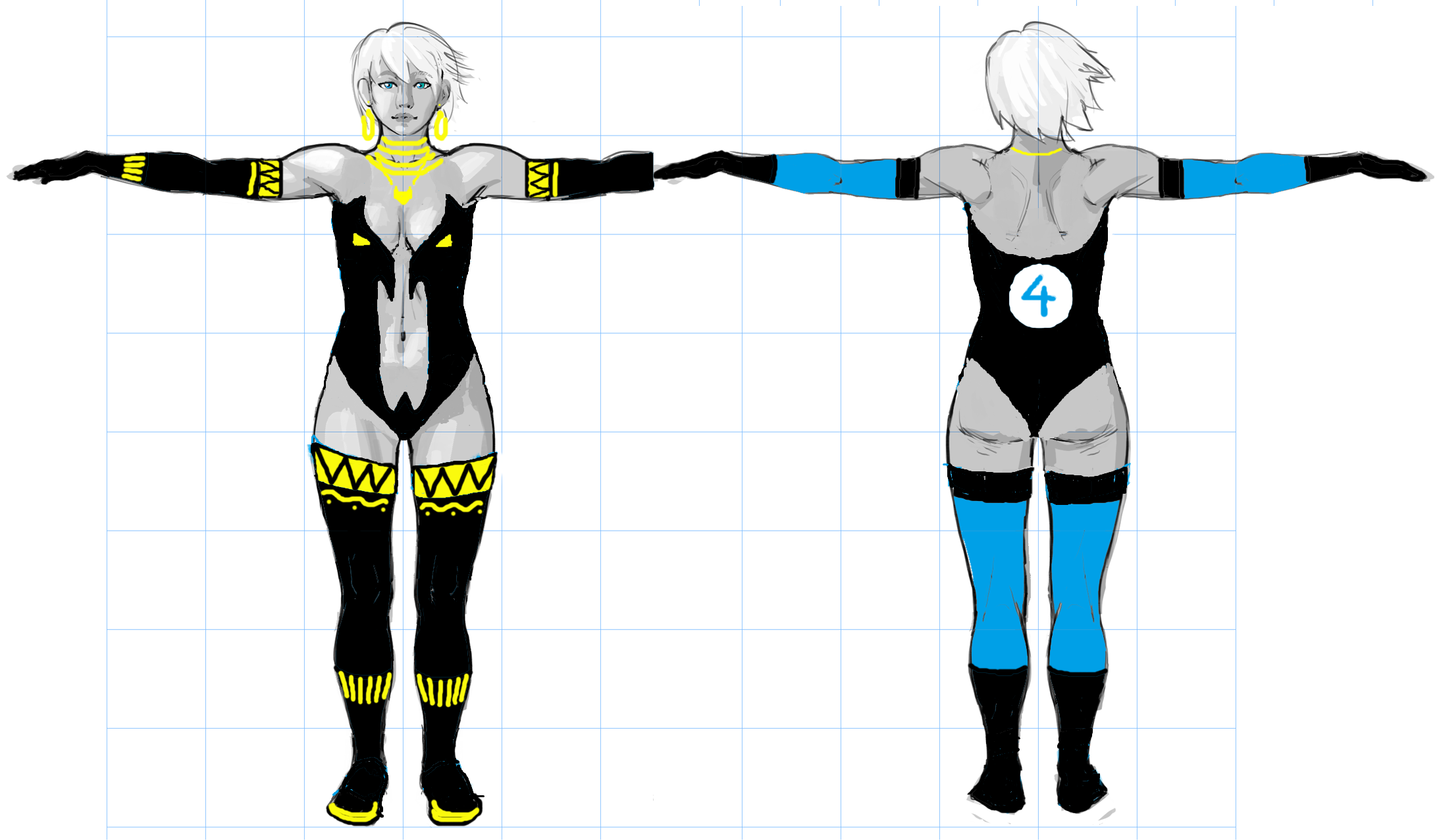 BP-themed FF suit v2.0. Now it's BP-themed, not just Wakanda-themed. It's based on v1.0, but has more black parts, and the middle resembles a panther head with an open maw. In the timeline I suggested, Sue created it to greet BP who was absent for several months. Sue missed sex with BP so much, she just didn't care what would others think, and created this blatantly BP-themed FF suit redesign. She wore it for only 2 months, but BP's reaction and sex still made it worth it. Note the FF emblem being relegated to the back while the panther maw is at the front, as a sign of Sue's brazenness.