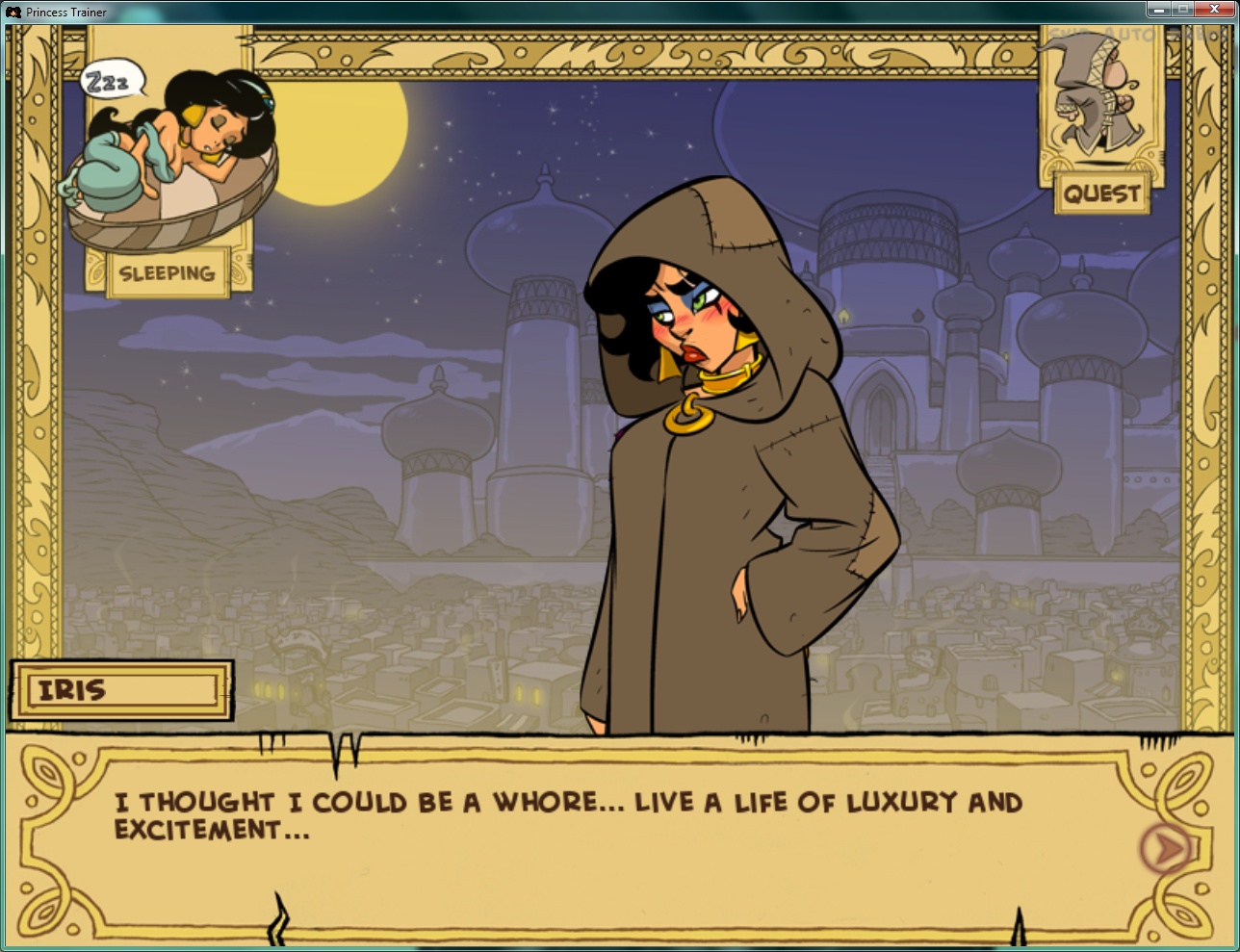 The only scene where Jasmine truly ends up broken is the ending. There could've been some more in-game hints to her being totally broken - and maybe make the tutelage prices higher, forcing you to actually do the quests to reach better jobs and more money, and ultimately making the submission classes have more impact.