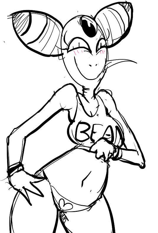 So there was a mention of a swimsuit edit of OP and I wanted to have a hand on it. I've never drawn before, not traditional nor digital, but my gf owns a pen tablet so wth not? I need feedback though, also tips on how should I close the gap on Merris ass.