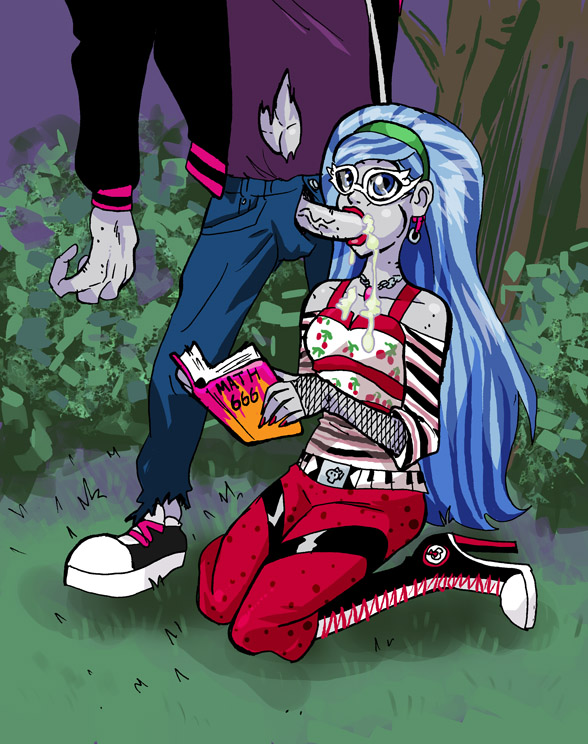 1.) Draculaura is giving a blowjob. When the dude cums she thinks to her self "I hope semen doesn't count.