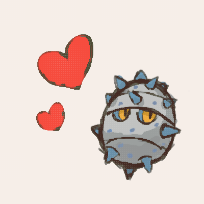 Tesshido #597When it sense danger it counter-attacks by shooting out its spikes all at once. In that opening it then rolls and runs away. It stabs its spikes into cave walls to cling to them. It absorbs the minerals in rocks.(Surprising no one)