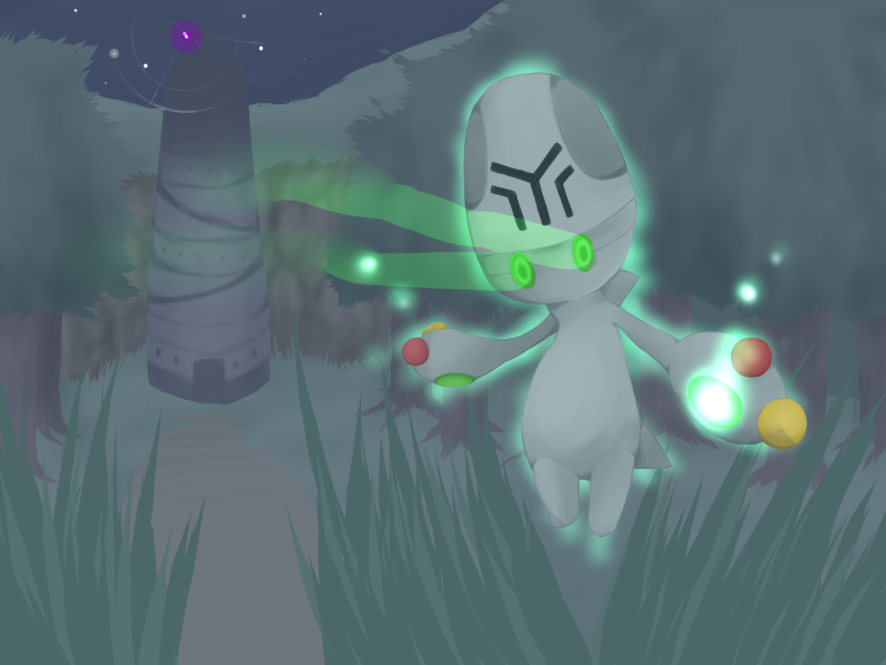 Gochimiru #575It controls Pokémon and people with hypnosis. According to old tales, some are stolen away by Gochimiru as they sleep. Starlight is the source of its power. At night it uses its psychic powers to levitate rocks and leave them in the same arrangement as the stars.