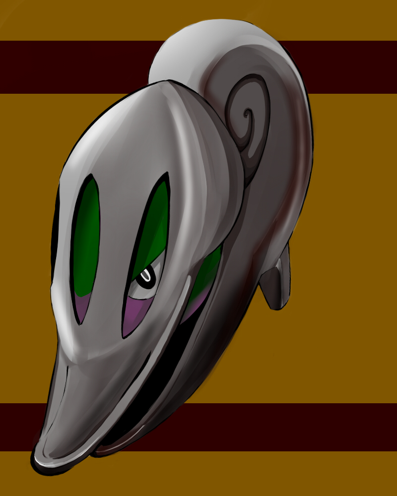 Shubarugo #589A Pokémon that evolved when it found the shell of a Chobomaki. A steel armor guards its entire body.