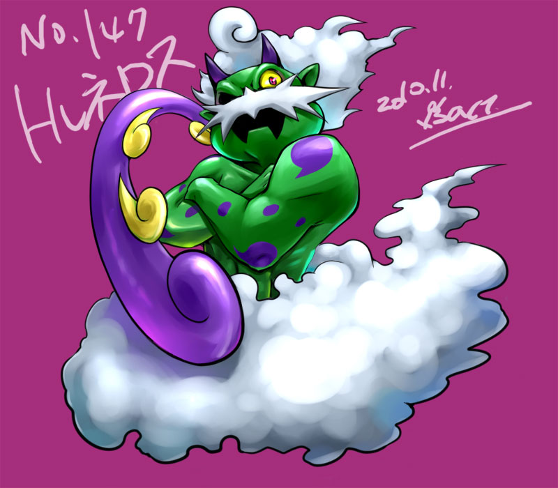 Hiyakkie #516When it shoots pressurized water from its tail it is powerful enough to destroy even walls of concrete. It stores water in the tuft on its head. When the stored water is dwindling, it supplies more by siphoning water with its tail.