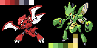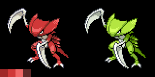 This is the thread where we discuss Shiny Pokémon. The good, the bad, the ugly.Take my picture, for example. On the right is the original shiny Scizor, and on the left is one I recoloured according to the shiny Shuckle's colour scheme.What do you think is a better colour for a Pokémon? What was your first shiny? What's your favourite? Least favourite? Why?