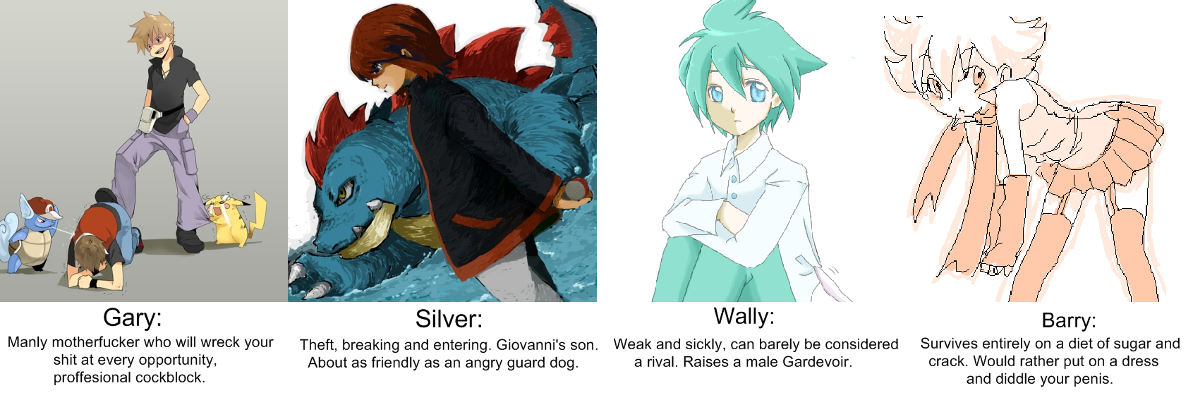 Silver was an absolutely shitty rival, because he didn't serve a true purpose. He wasn't a childhood friend like the other rivals, and he really didn't care about the player at all beyond seeing you as a nuisance in his way. His ideology made no sense; he constantly blamed failure on his own Pokemon, but never changed his team out except in a few small occasions. And despite losing to you again and again, a trainer on the same level as him, it took an utter thrashing from Lance -- a trainer way above his level -- to start to think that his ideas might be the wrong ones. And even after that, nothing actually changed. He kept using the same Pokemon and the same techniques in battle. It got even worse in HG/SS when he also became a colossal moron, immediately ripping the Rocket uniform off of you after spotting you in it, not thinking for a second that you might be trying to go undercover, or that you might have even just joined Team Rocket. And then he just leaves, not helping you fight Team Rocket at all, despite hating them so much. And even after his change of heart, he doesn't return the Sneasel he stole from the trainer in Cianwood. He's whiny, stupid, and doesn't serve any role in the plot except to be the token rival.