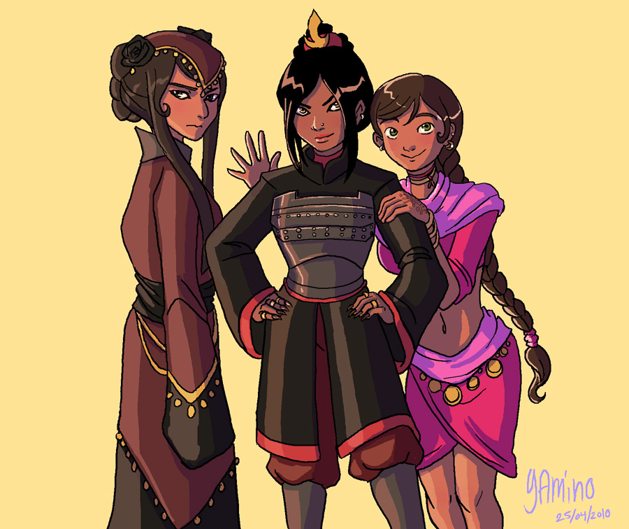 In lieu of all the movie's racefail wank, I thought I'd bring up something I haven't seen anyone else discussing. As anyone who is familiar with my Avatar fanart probably knows, I'm pretty big on the Dangerous Ladies. When it was announced that Zuko was going to be Indian, my first though was "Oh man. Indian!Azula." And most of the Fire Nation will be, too. For some reason, the thought of the Dangerous Ladies being Indian pleases me- I love their original designs, of course, but I'm also a big fan of Indian women's fashion and design. It's possibly the only thing I'm looking forward to with the movie trilogy. Not to mention that the addition of three badass ladies of color might make up for losing Katara. (As far as I'm concerned, she's not in the movie.) Thoughts?