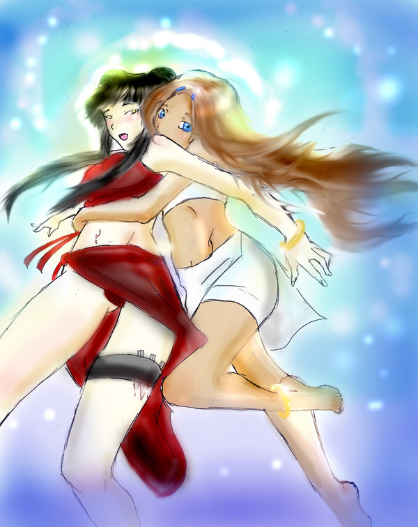 I was actually thinking alot recently about what I would do for a fanfic or fan comic that followed right after the last season. I thought the best idea would be to start right off with a Mai and Katara story, where Katara would take Mai back to the fire nation on Appa (Sokka would go along, but for reasons that wouldn't factor much into the first 'episode'). There Katara would make some attempts at girl bonding, Mai would probably have a jealous misunderstanding over Katara/Zuko's relationship and then some fighting would happen involving some fire nation higher ups that don't care that the war is over (leading to the entire plot of the 'season'). Sorry it doesn't involve any scissoring or 69ing, but I do think the two characters would be alot of fun to play off each other.(why the hell does the spell check have no probably with 'scissoring' and '69ing' as words?)
