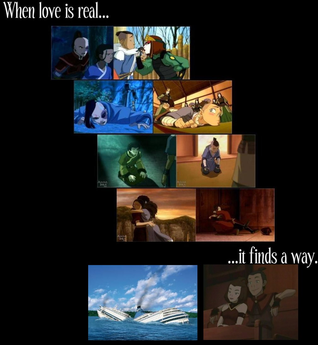 Maybe it's because I watch a lot of Joss Whedon stuff, but from the second I saw Suki and Sokka just having such a loving, functional, canon relationship and being so generally adorkable together, I was just thinking: "Oh, crap. One of them is going to DIE, aren't they."And I'm just so happy neither of them did, you have no idea. Definitely my OTP of the series.