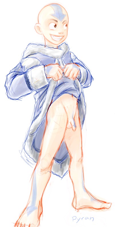 Here’s Aang wearing Sokka’s parka. And nothing else.