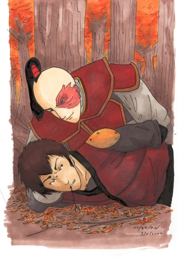 >>74759Okay, gotta chime in on that one, that's bull. Zuko is usually made a lot more femenine by the artists, sure, but in the series itself?He doesn't have hips like the way he's drawn here, he's hot headed, very defensive of others looking at his girlfriend, and quick to challenge others to an Agni Kai, which is *nothing* if not some overtly machismo contest of honor.If anything, you're better off making the argument that he's trying too hard to be masculine, or even compensating, but all in all, Zuko's not very girly.