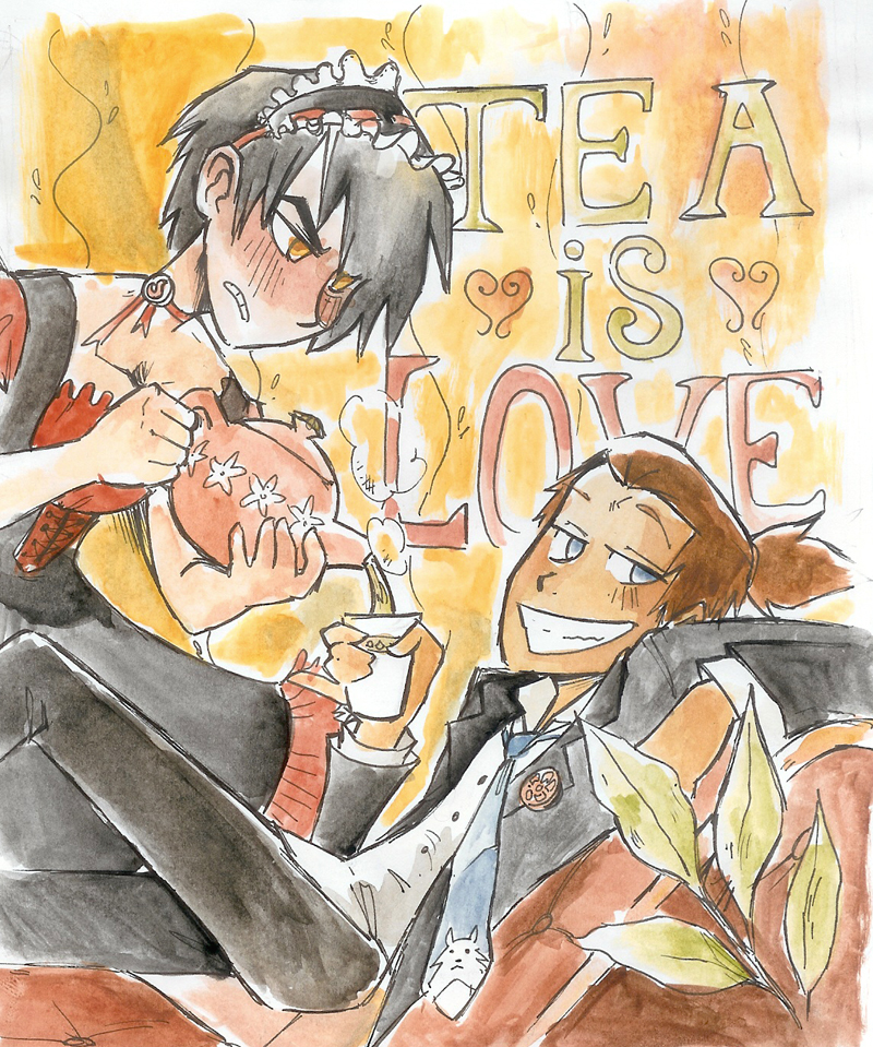 >>61876What.>>61879WHAAAAAAAAAAATDagda, seriously, WHERE ARE YOU EVEN FINDING THESE?I have to say, the whole lets-dress-Zuko-in-drag thing is a little mystifying to me, mostly because it seems to be so COMMON. Though the popularity of GoDevilDante probably has something to do with it, as she'll stick Zuko in a cheerleader outfit at the drop of a hat.Uh, and because I feel weird posting here without images...this just turned up on DA this morning!