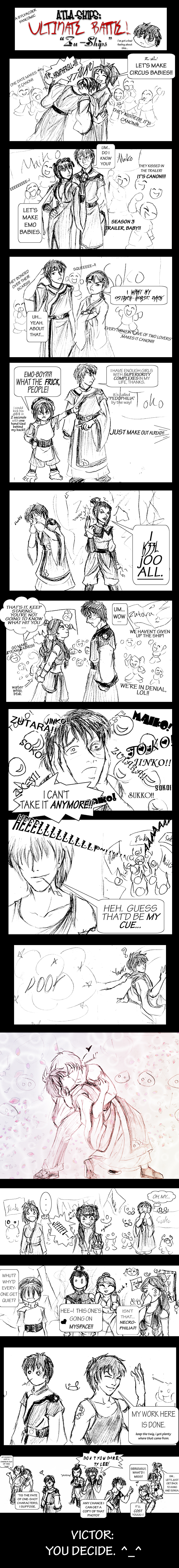 >>59641>>Poll: what's your favorite slash pair?<<Zukaang, because it's such an incredible relationship on so many levels be they romantic or platonic or antagonistic. Hell, Aang even wonders early on if he and Zuko could've been friends, and by the end of the series they are.And of course, "The Firebending Masters" was an episode full of gay awesome. "Dance with me, Zuko!"