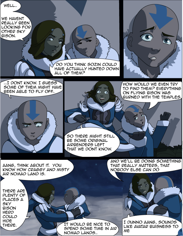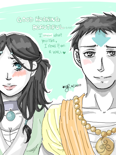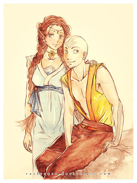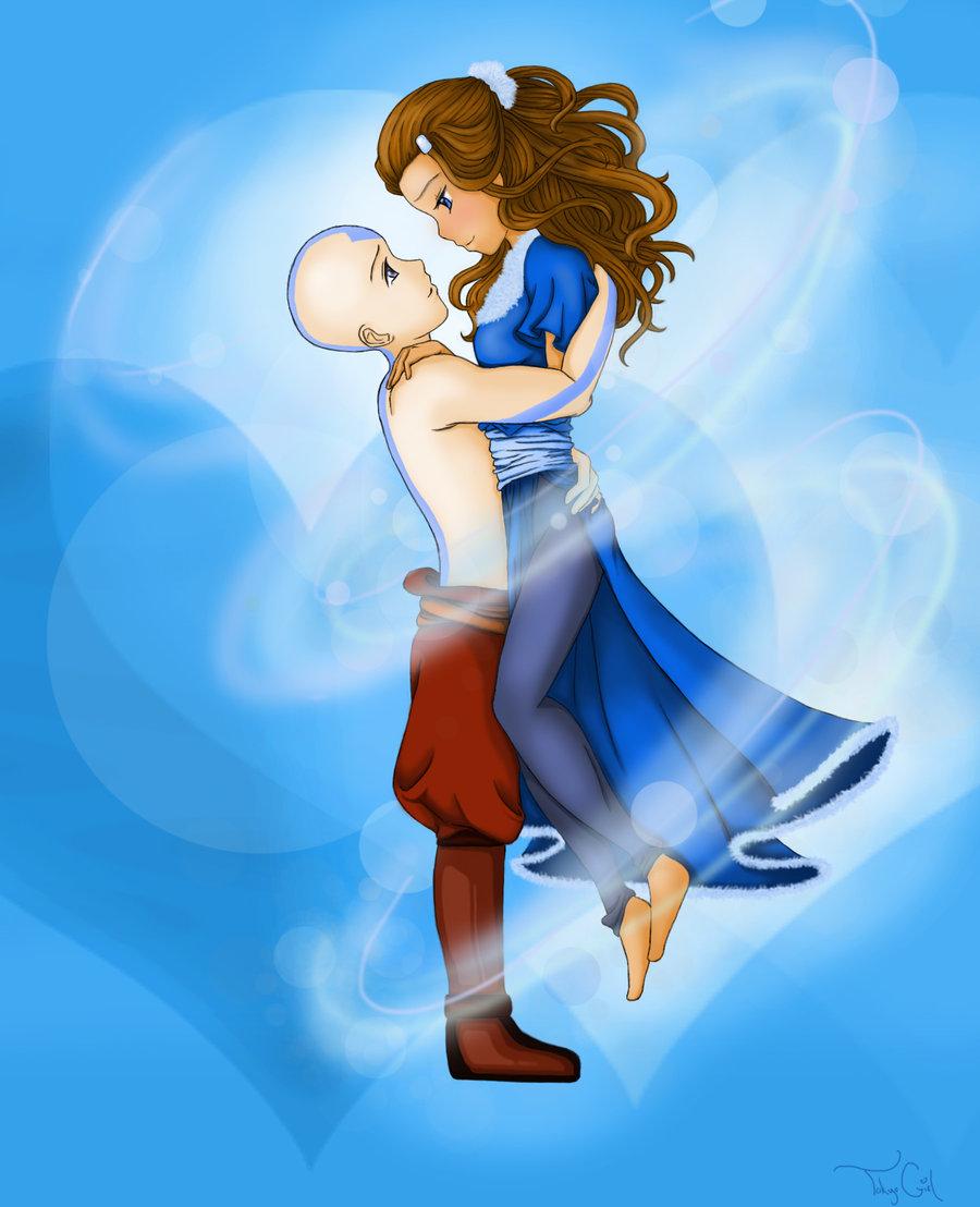 Why are we even debating this? This is the Kataang thread, not the ship-wank-debate thread. Katara loves Aang, Aang loves Katara, they live happily ever after, the end. Was it somewhat predictable? Yes, to those of us watching the show without blindfolds, but who cares? Does that mean it isn't cute, or that it's just a dumb cliched romance? No. Does that mean their relationship is going to be 100% perfect and without complications or arguments? No. Did the creators toy around with the shippers and make them wait until the last minute? You bet. It's also important to note that Katara is the one who came out and kissed Aang in the finale instead of the other way around. This was her way of showing him that she feels the same way. It was also her suggestion to kiss in The Cave of Two Lovers, whether you believe they actually kissed or not. And they're 12/13 and 14/15 by the time the war ends, they might kiss and hold hands, but it doesn't mean they're going to be snogging face and saying cheesy love-lines to each other like Zuko and Mai. Give them a few years. In the end, it doesn't matter how or why Katara made up her mind, it just matters that she did.>>77987>It's not so easy to say things when you're a 12 or 14 year old who think you might be in love, you know.Especially if you're in love with The Goddamn Avatar. That's got to be kind of intimidating, even if he is your BFF.