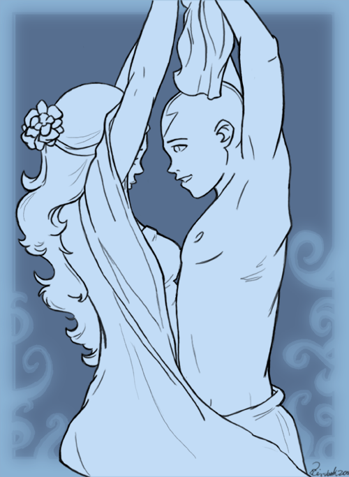 I think someone needs to draw a picture of katara and aang (possibly older)It shows aang kind of scratching his head, and for some reason ripped as hell, going "Yeah they've had me do a lot of Earthbending to rebuild the walls... why?" And katara blushing and biting her lip... possibly with a thought bubble of some kind.