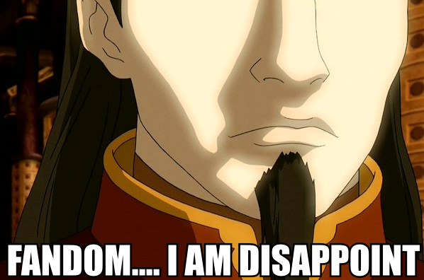 This isn't really a confession about the show as it is the fandom, but I for one have never understood the obsession many fans have with "what happened to Zuko's mom?". It's true it was sort of a lame cliffhanger, but I'm not waiting on the edge of my seat for a resolution, nor do I get people saying how they want a special or series dealing with the question. I never expected it to be anything bigger than Ozai finally telling Zuko where she is, Zuko goes to get her, teary-eyed reunion, and that's it -- nothing sufficient for anything more than a passing mention.