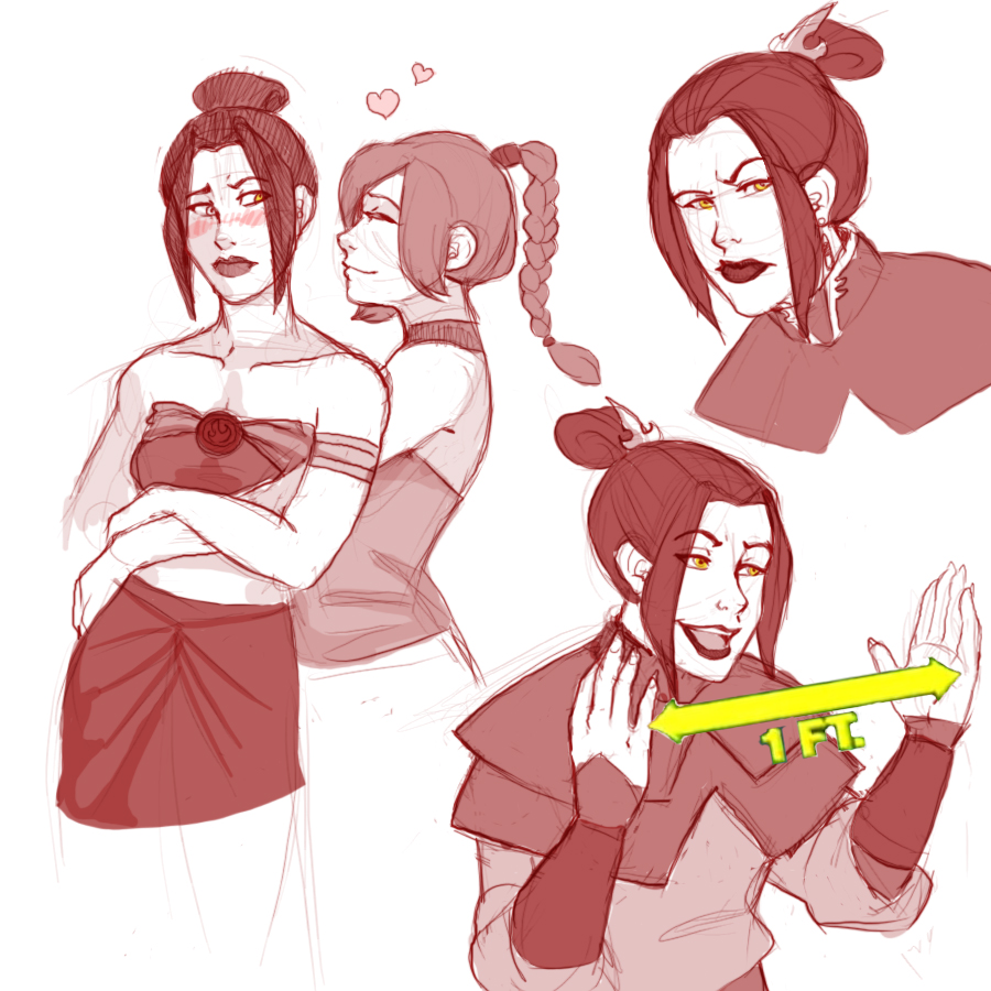 >>78967>And even if they were lesbians, which they weren'tBISEXUAAALS!! :D>Ty Lee really didn't even like Azula all that much.Ty Lee: What? You're jealous of me? But you're the most beautiful, smartest, perfect girl in the world!I'm not here to argue that Tyzula is canon, I know it isn't, so don't compare us to the Zutards. But unlike Katara and Zuko, they had some real chemistry together, and Ty Lee was pretty much Azula's only real friend. I doubt it would have been a very healthy relationship if they really did hook up, but I was never expecting that to happen. I think the creators just subtly slipped us some subtext, knowing there were certain fans out there who'd like it. Tyzula's just hot and they seem so natural together. If you like Sokkla or some other ship, no one here's going to jump you. I think some Sokkla fans have developed a persecution complex since they're in the minority. I personally don't think they go well together because Sokka has enough bitches as it is and there's no way they'd be all lovey-dovey and romantic together, it would be hatesex or a one night stand. I do like some of the art, though.