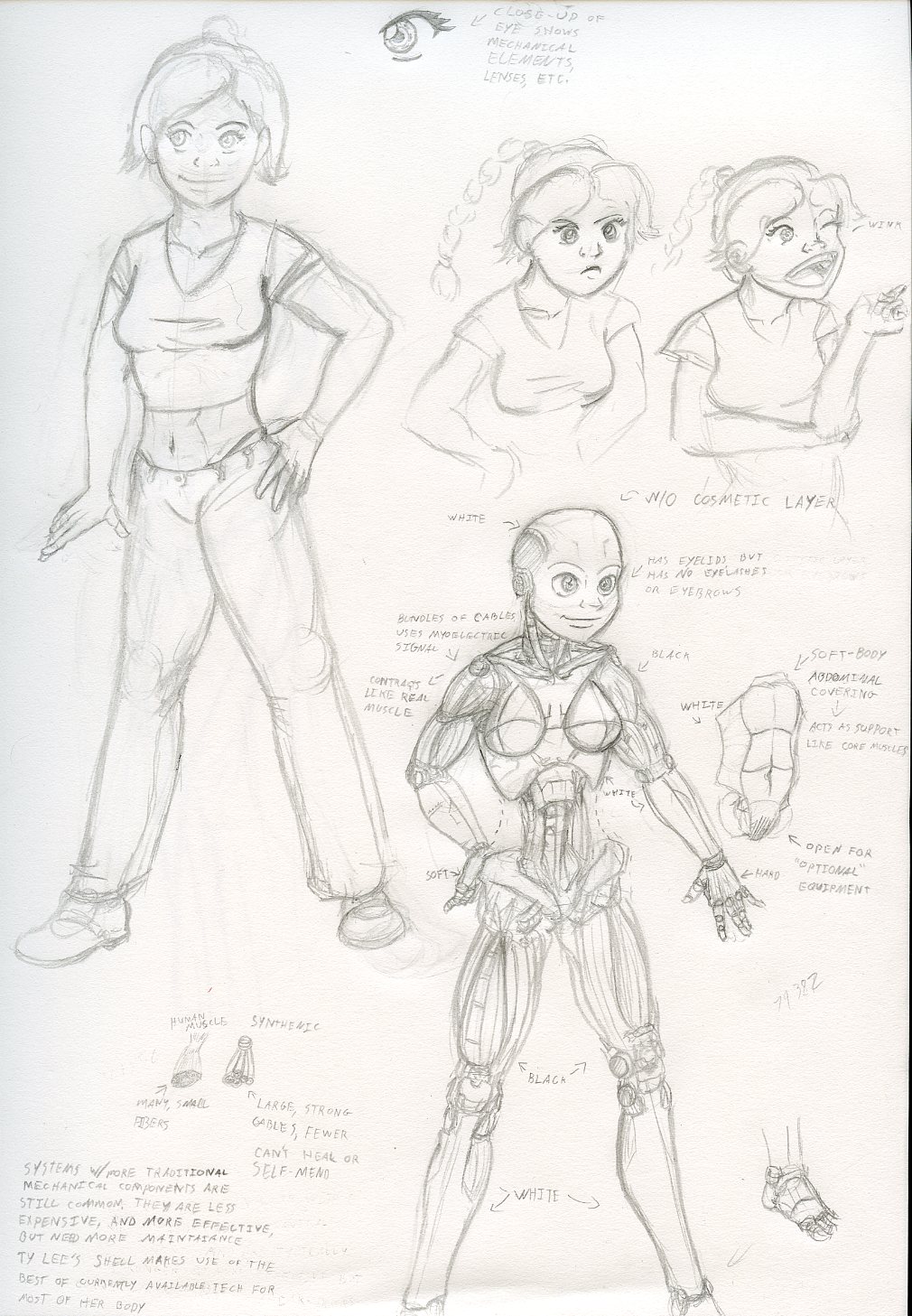 Just postin' some design notes.Based off CNB's idea for Ty Lee here: >>29818Design for the "skinless" version is loosely based off Sonny, from the 2004 movie "I, Robot."