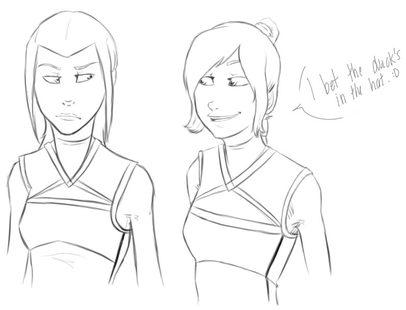 Clearly there must a Dangerous Ladies band.Ty Lee as requisite tambourine girl, Azula on electric guitar and vocals? Mai on....keyboard, maybe? Bass? And Zuko plays drums for them until he leaves them for the Gaang's band.