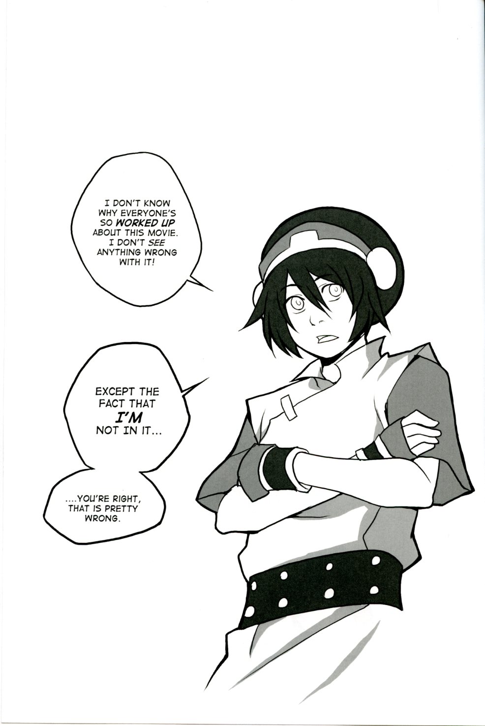 Page 20 was just a blank, black page.Again, amusing, but out of character for Zuko. Wouldn't this have been better served by Sokka saying this and Katara hitting him? It's treating Zuko like Sokka and Suki like Naru Narusegawa.