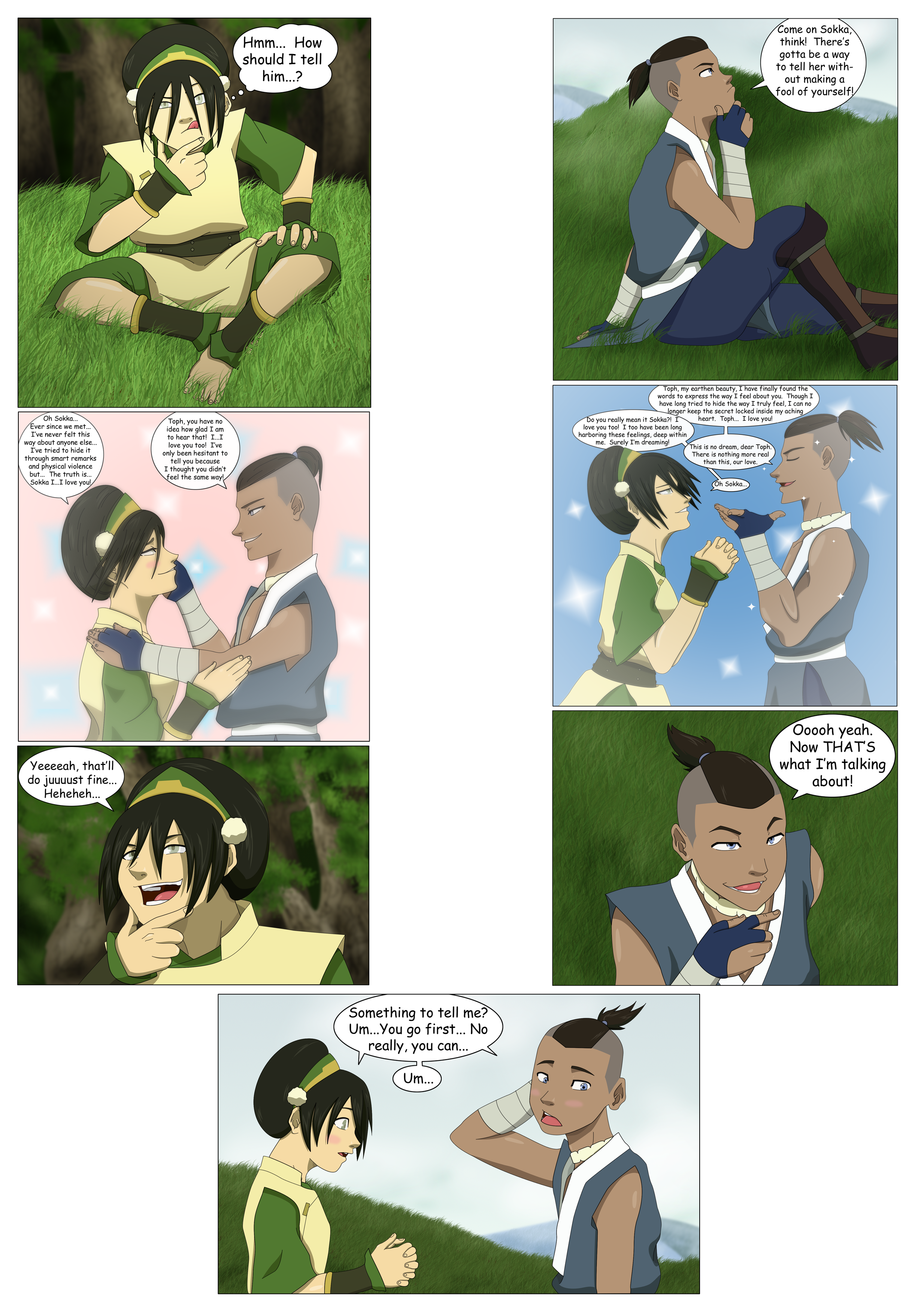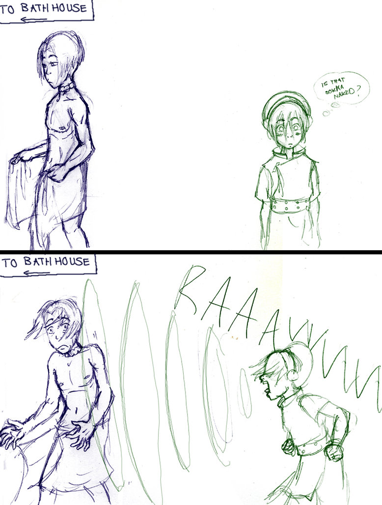 >>82607A bit I always wanted to see.Toph: Hey, Sokka, I had a question to ask you.Sokka: Toph, please I bathing here.Toph:*Blushes* Bathing? Like as in naked?Sokka: Well, don't worry about it. It's nothing you haven't seen before.Toph: ... You cocksucker.