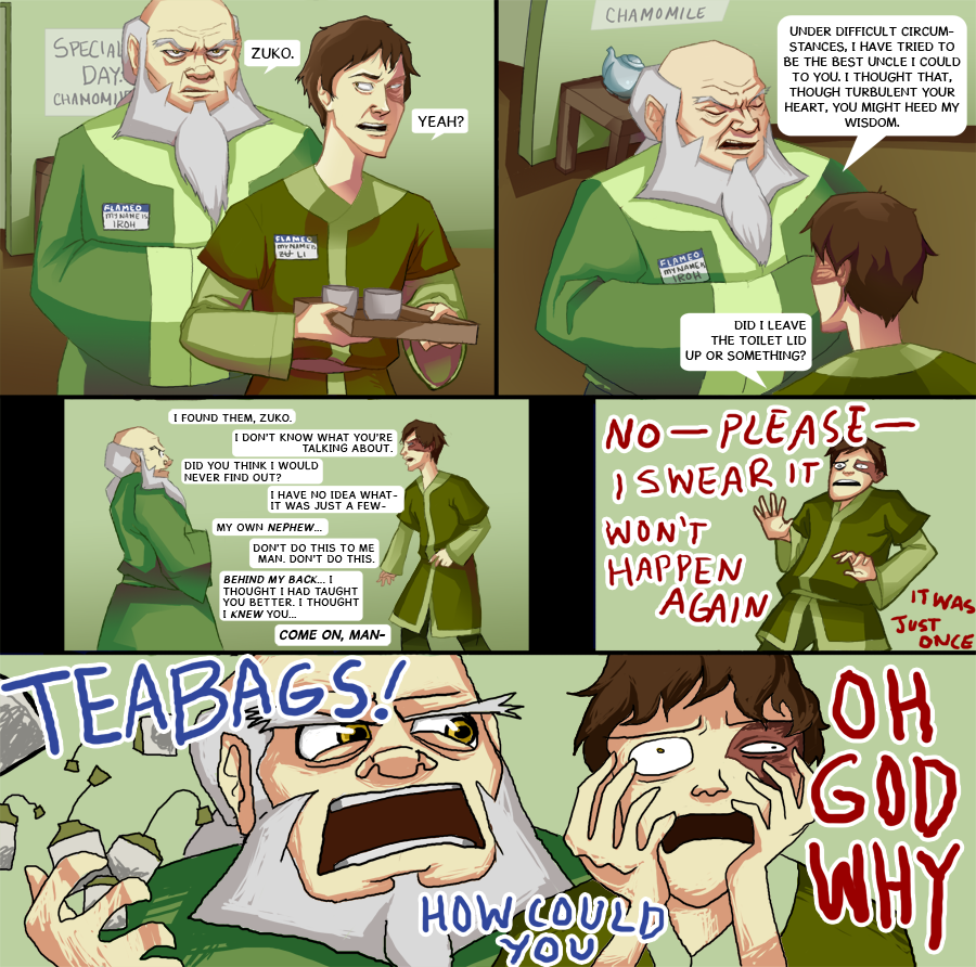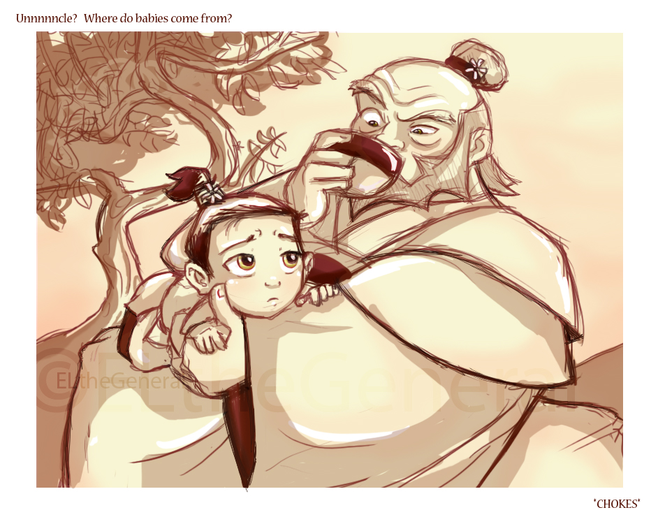 i've been thinking about this for a while:Why haven't we seen/heard anything of Iroh's wife? Did she die before Lu Ten or did Iroh just neglect to mention her? I mean it seems like something that'd matter a lot to Iroh, seeing how he views love and happiness. Maybe after Iroh's wife died, he just started banging Ursa on the side. It's not like Ozai's emotionally aware enough to know when she wants some hot dickings, and Iroh laid siege to Ba Sing Se for less than a year before Lu Ten died... that's a lot of time he could have been laying his dragon of the west into her fire lily, if you know what i mean. and you do know what i mean ... pic related?