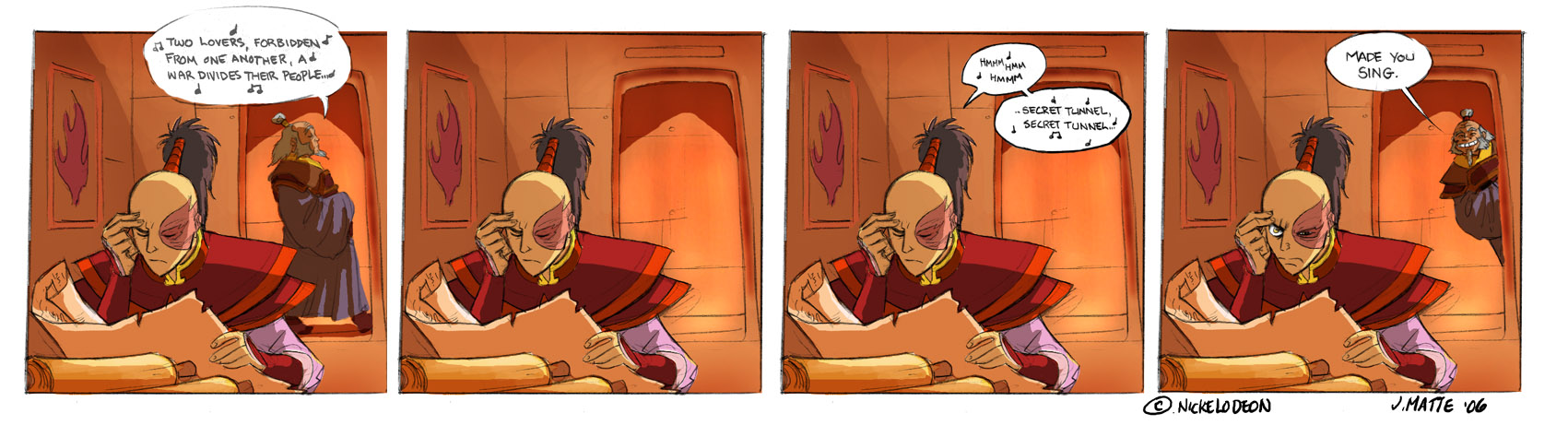 found this, rufftoons did a little snippet, pretty well done. the avatar AU comic he (or she) did is superb as well.