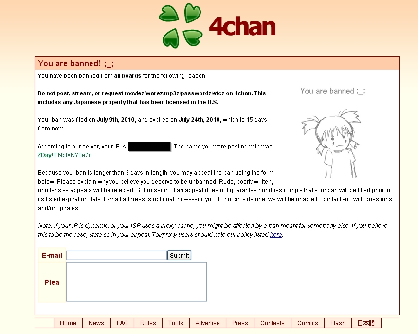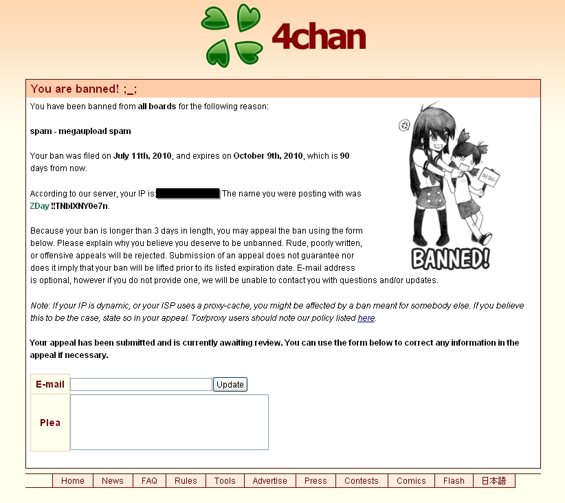 4chan complaint departmentBans, spam, (lack of) quality, etc.