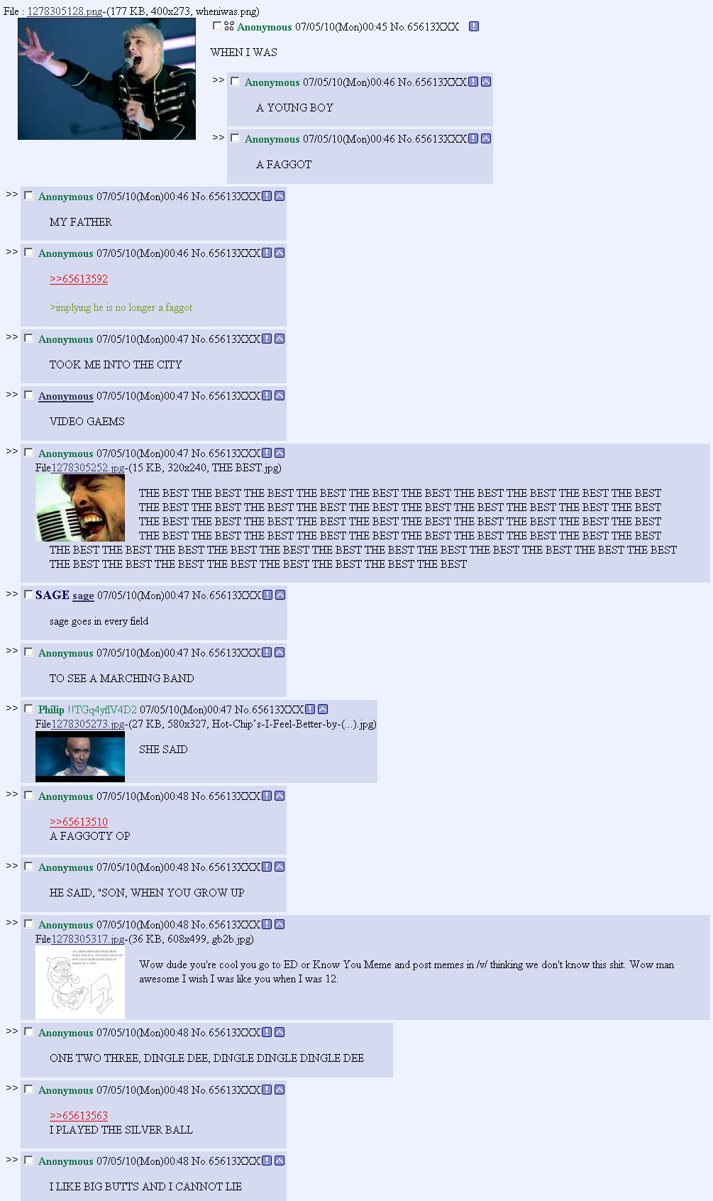 >>251384/tg/ is one of the few "good" boards left on 4chan.>/tv/'s pedophiles>only mild>laughingthings.fileextension/mu/ is nowhere near /b/ levels of shit just yet, and the board has always been inherently trollish because music discussion is always my opinions vs. your opinions. Just go for share threads, all else can be left to rot.