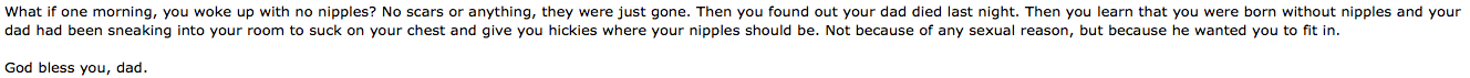 >>266898I don't even know why but that was a great story, bro.