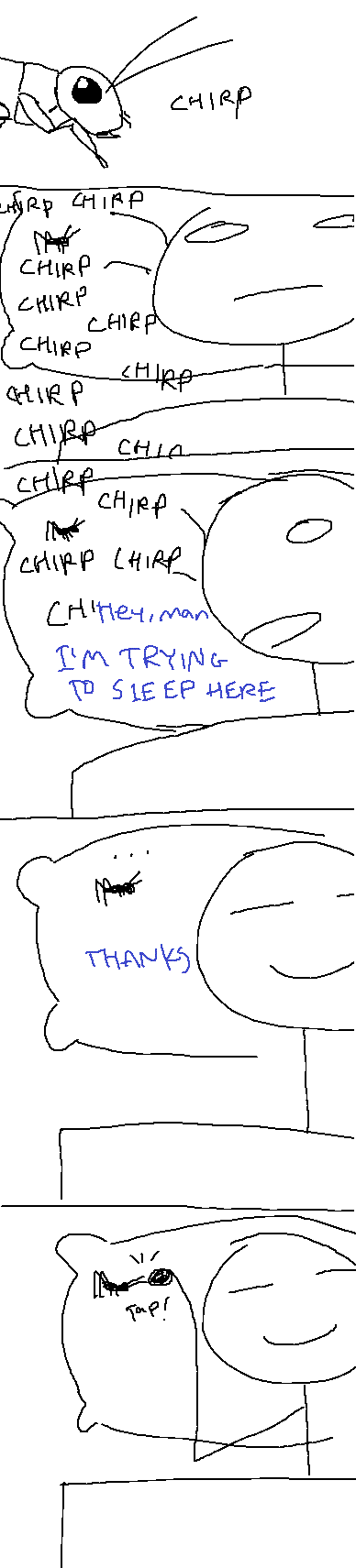 >>266894I don't mind crickets, but I would not care for one in the house uncontained.>>266898And especially not in my bed. Funny story, though.