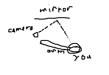 >>267027One way is to hold the camera out and to the side of you so that the camera's line of sight is bouncing off the mirror towards you.