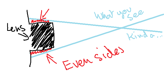 >>267034Well this >>267038 shows you that you need the lens to be facing you. If it's a camera with the lens sticking out, that can help. Make sure that when it's pointed at you, you see all sides evenly.The view is from above or the sides.