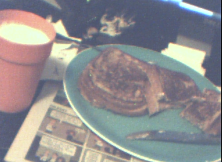 What's for breakfast over there by you, /ck/?Pic related, it's mine. Hard to tell because of shitty webcam quality, but it's stuffed French toast.Stuffed with fucking fluffernutter.And also 9 ounces of milk because I like to keep healthy, y'know?
