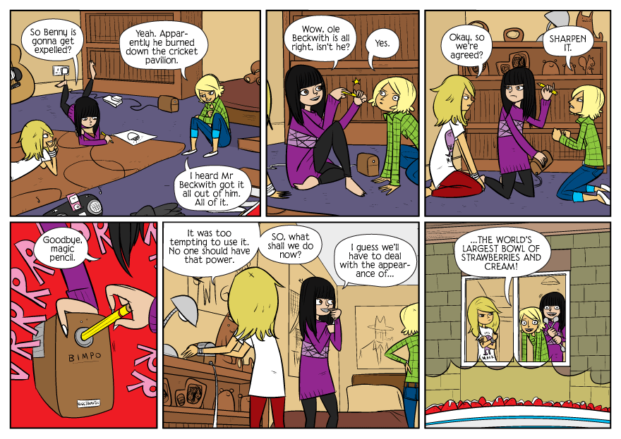 >First panel>Mildred's lines.Ahahahah! An Homestuck reference?Also, DAT STRAWBERRY AND CREAM BOWL>>94406:3
