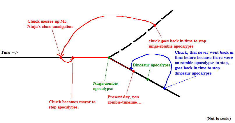 Wait, so if chuck haven't timetraveled since that one time in army of one, then that must mean that the one that got hit by the car is from... the future!