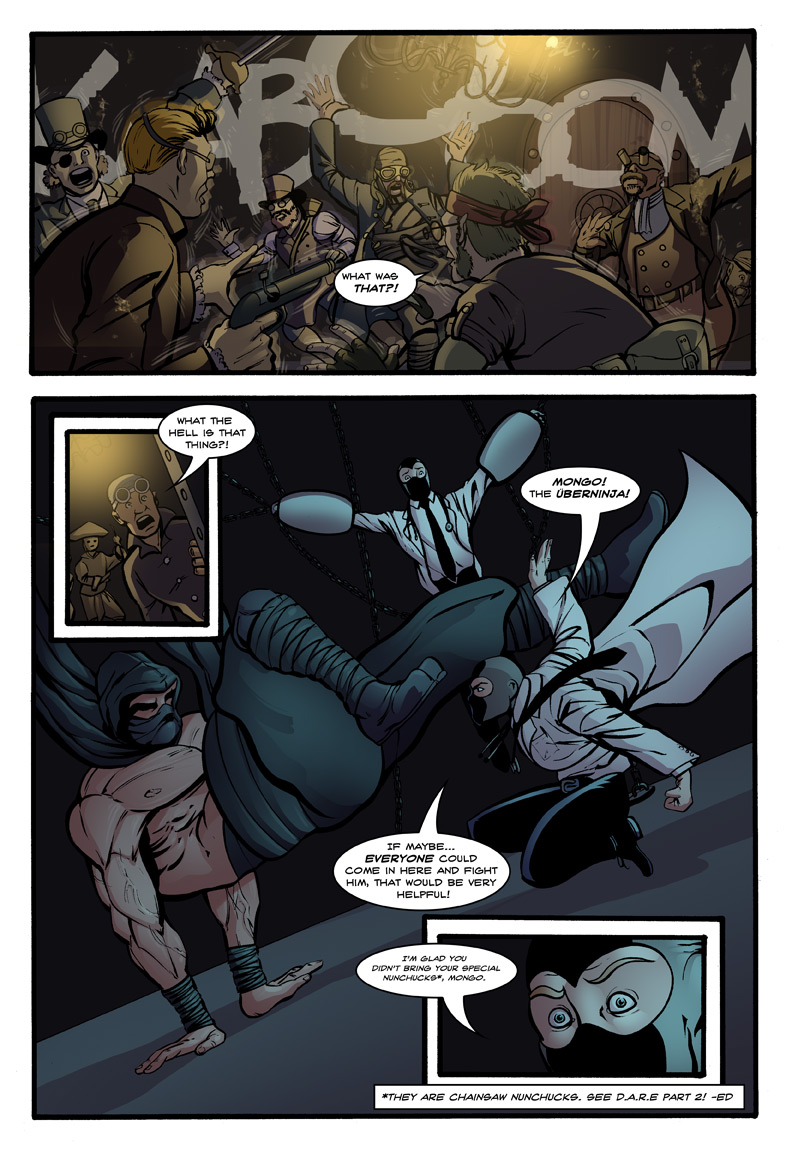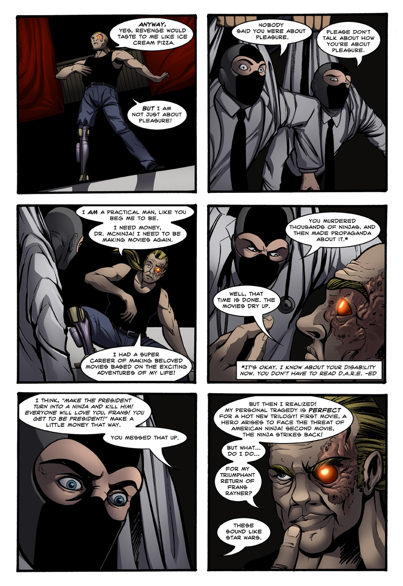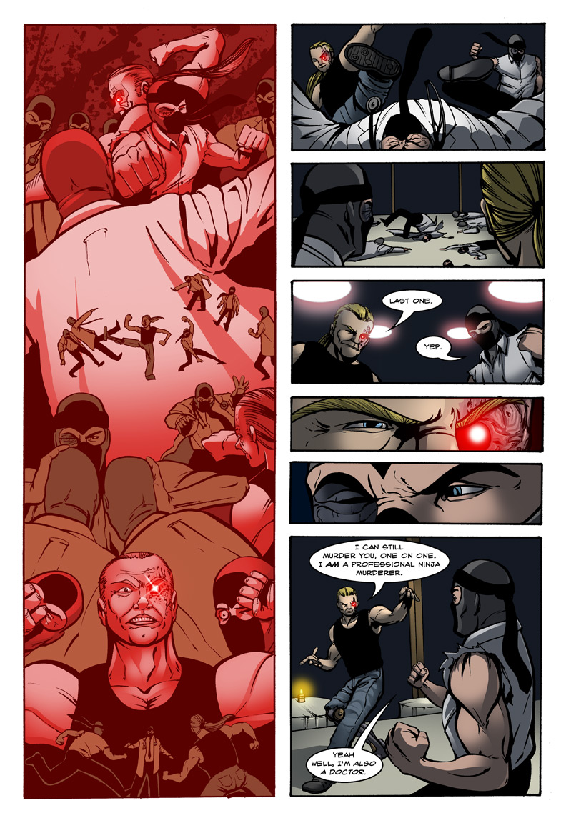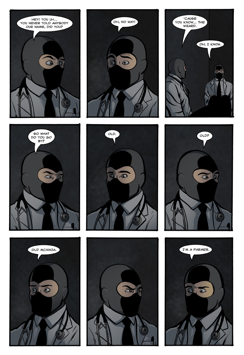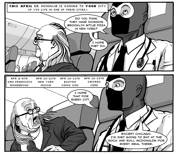 >I’m really sorry to announce that at the end of this story, I’ll be taking over the inking of Dr. McNinja, and Kent Archer will no longer be working with us.