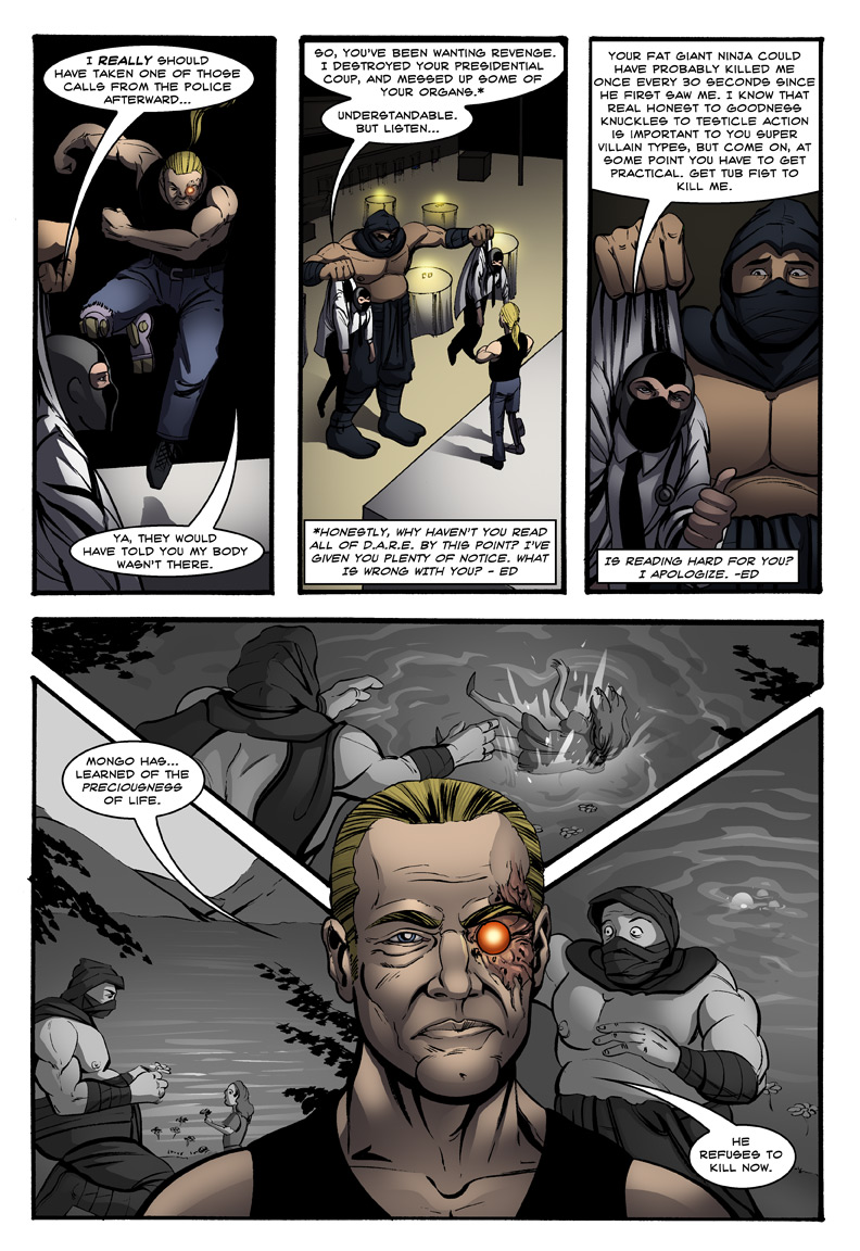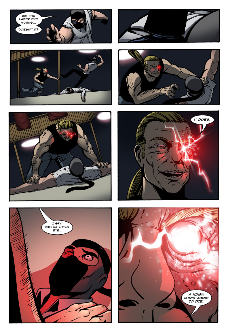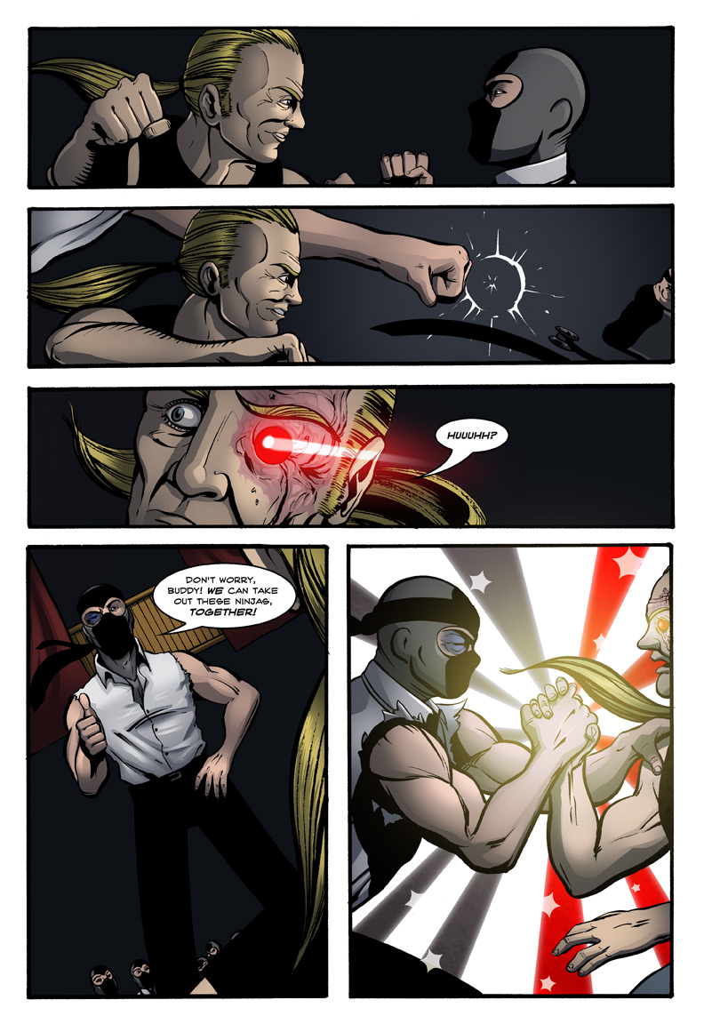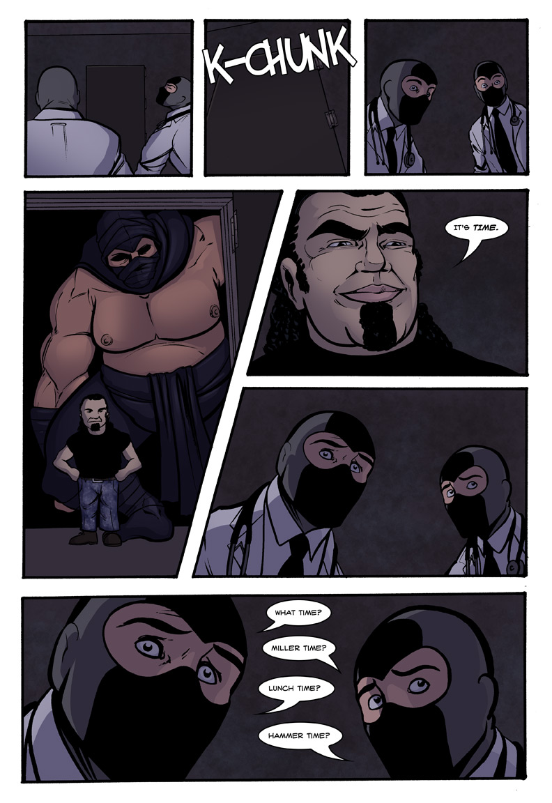 >I’m really sorry to announce that at the end of this story, I’ll be taking over the inking of Dr. McNinja, and Kent Archer will no longer be working with us.