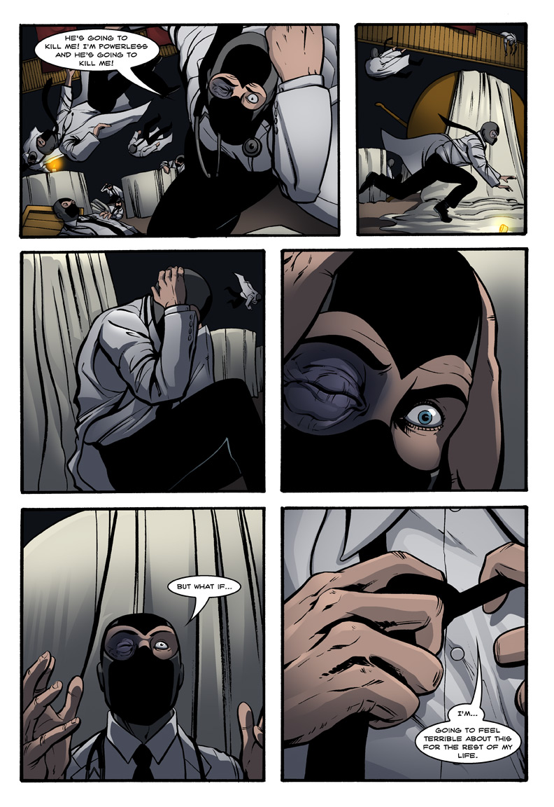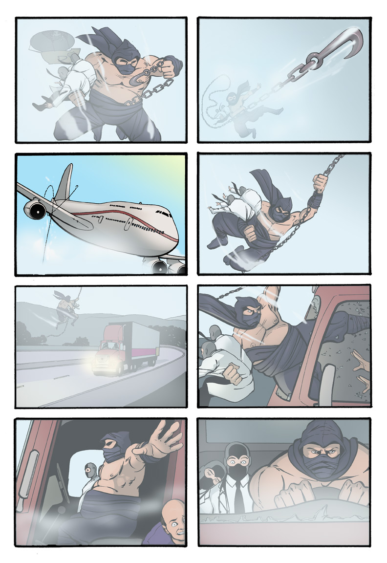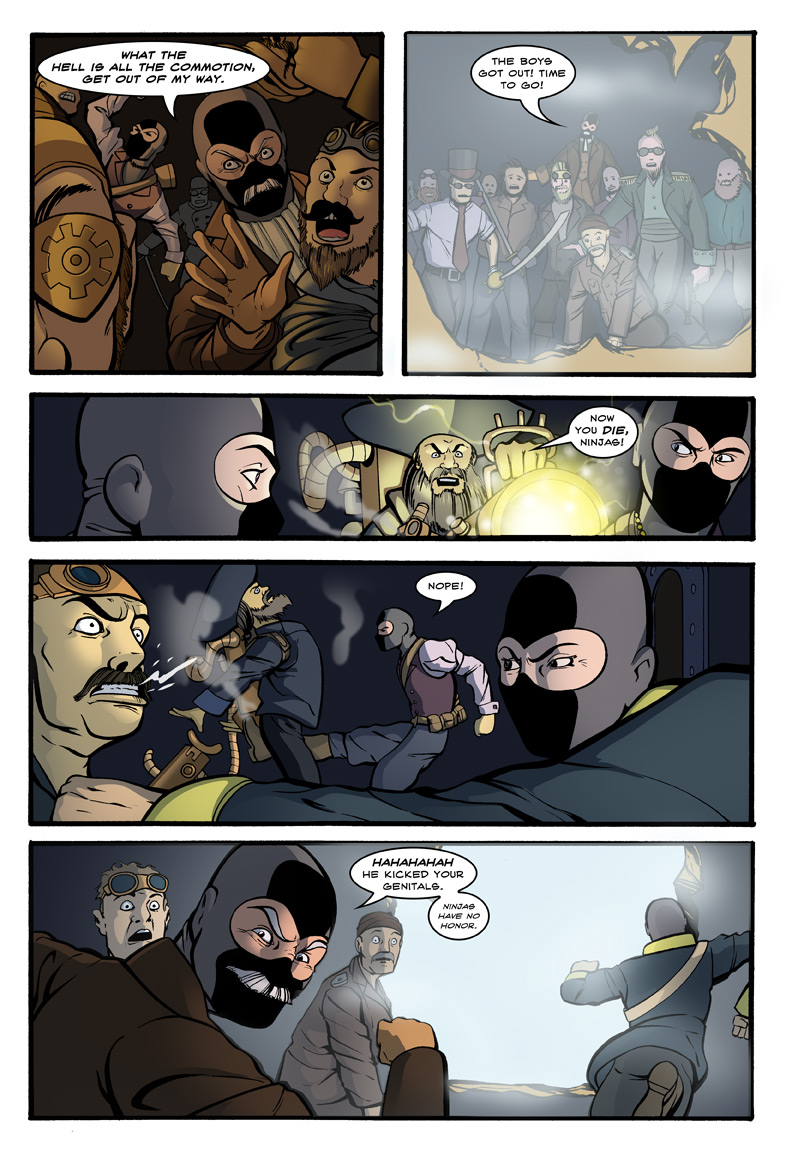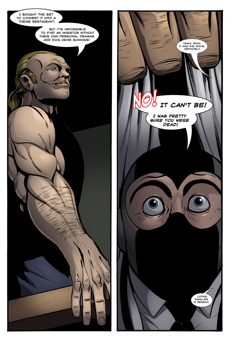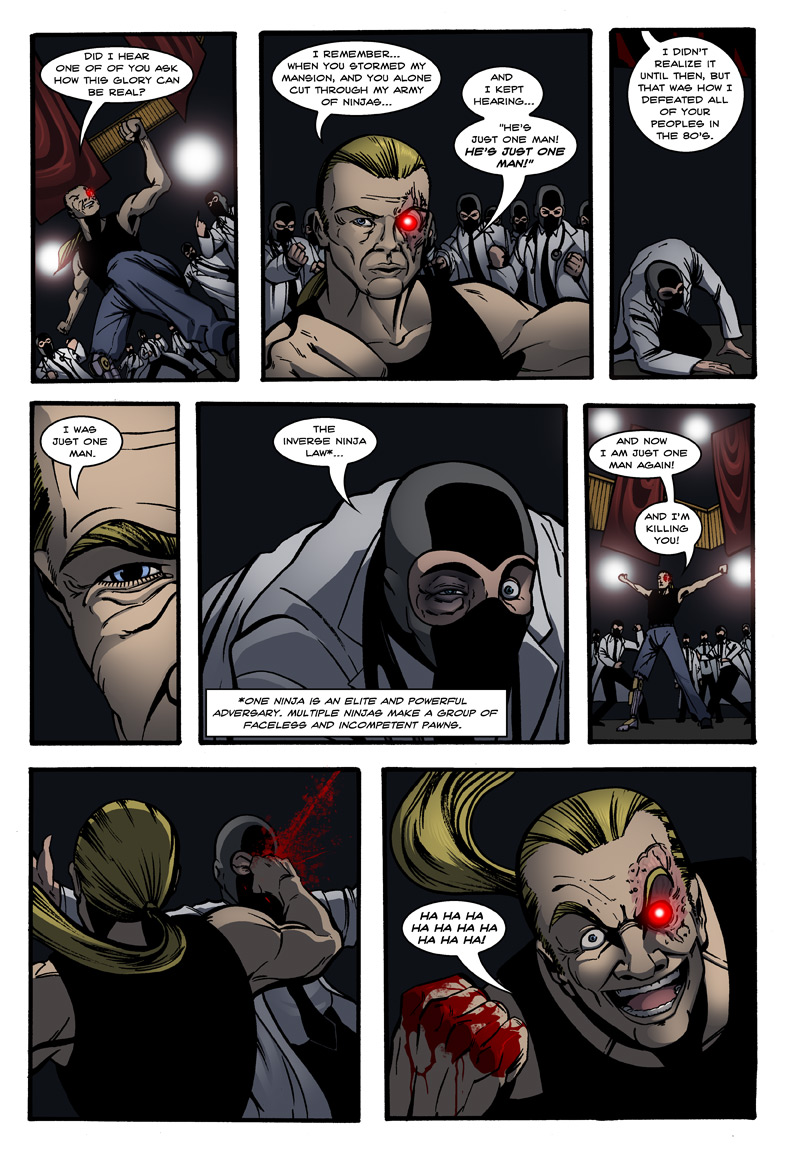 >I’m really sorry to announce that at the end of this story, I’ll be taking over the inking of Dr. McNinja, and Kent Archer will no longer be working with us.