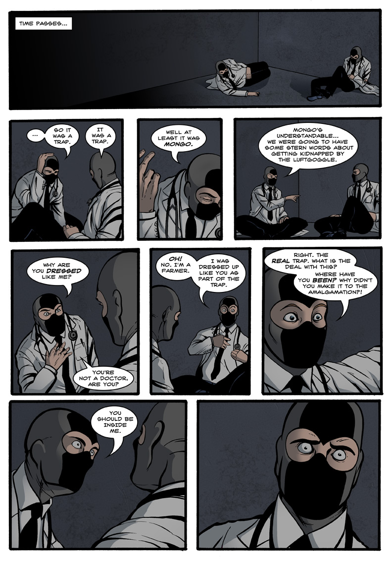 >>52025Doc's better off without this pusso inside him. "When everyone has turned against you, when you have no other options, you can remove your mask and disappear forever" is a long, long road from "It looked like there was a fight so I ran off to the sticks to be Dr. McNinja II The Easily-Scared-Off One and it worked out really well, too, because here we are, oh, I've urinated in my pants again."