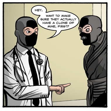 For the record: This also means Dr McNinja's been fighting at half power all this time. I just hope this doesn't get resolved by all but one of him dying.
