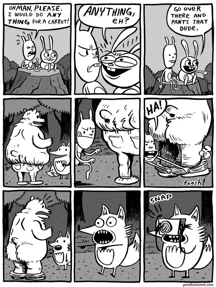 >>61669Lucky that wasn't a vampire rabbit gun>>61671I'm liking this odd clan though I do wonder what their connection is to the childhood of AxeCop and the eating of babies.