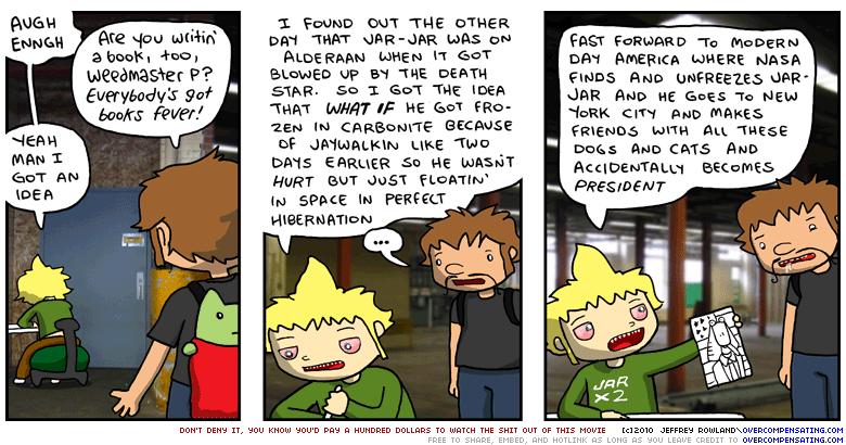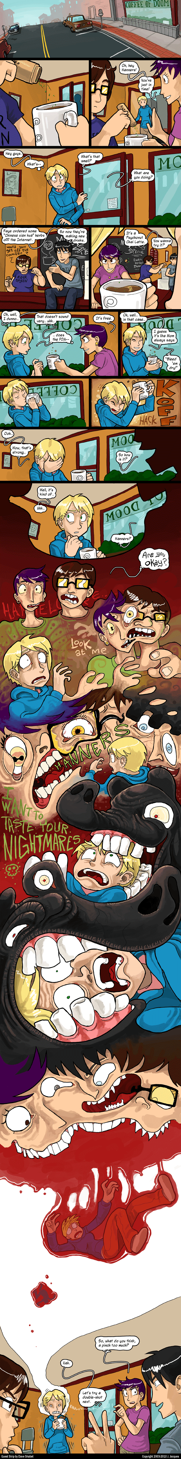 >>91258Oh god, There are three different webcomic authors in this webcomic. Why do they gather together like this? Hussie and Ryan North are bros. John Campbell and Ryan Estrada lived together in Mexico, I think. There is this subconscious drive. A calling in the back of their heads. Eventually all the webcomic artist of the internet will converge in a grand hive. The Penny Arcade Guys, Kurtz and Straub have already begun building it and when its finish Warren Ellis will take Wil Wheaton as his bride and begin a new world order of web based sequential art.