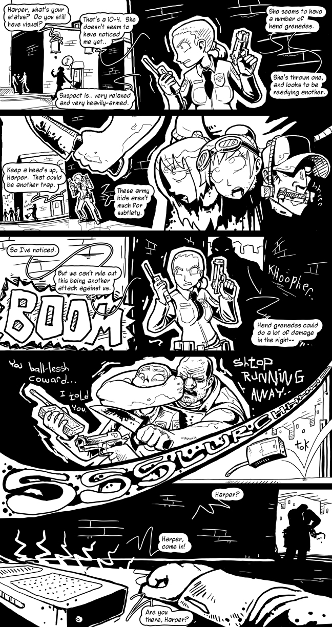 The last several pages have been discussions between Charlie and Tramennis, two of my favorite characters. Nothing but discussions, exposition and plot stuff. And I love it.