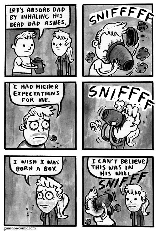 >>95093Whoa, I used to follow Cat Rackham years ago, when they were just posted to the artist's LJ.I don't really remember them being so... ok, I was going to say depressing until I got to the crazy cat lady one. HUH.