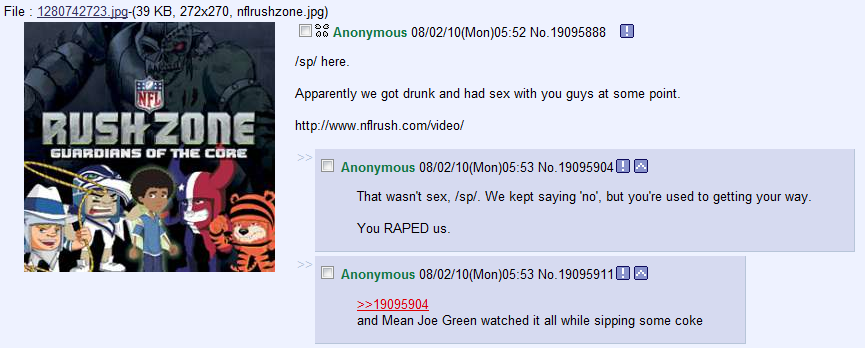 >>80778I only had a vague idea until I was like, twenty. I knew you had to move the ball to the end zone and then you got to kick for extra points, and that the quarterback threw the ball, but outside of that it was totally opaque to me.And care to guess what it was that finally did explain it to me?
