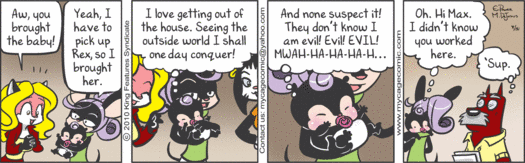 >>88299I'm just learning about this strip, so I don't get what inside joke is being made about the evil baby and the red dog.The secondary joke about the evil baby? That I have seen before.