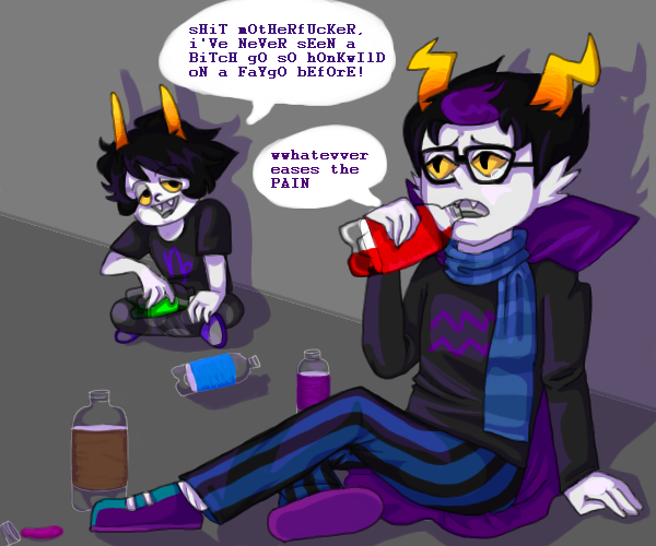 Hey Spleen. Guess who can't listen to NWA without thinking of Sollux anymore.>>87177I feel the need to commend anyone who can get Gamzee's hair down.