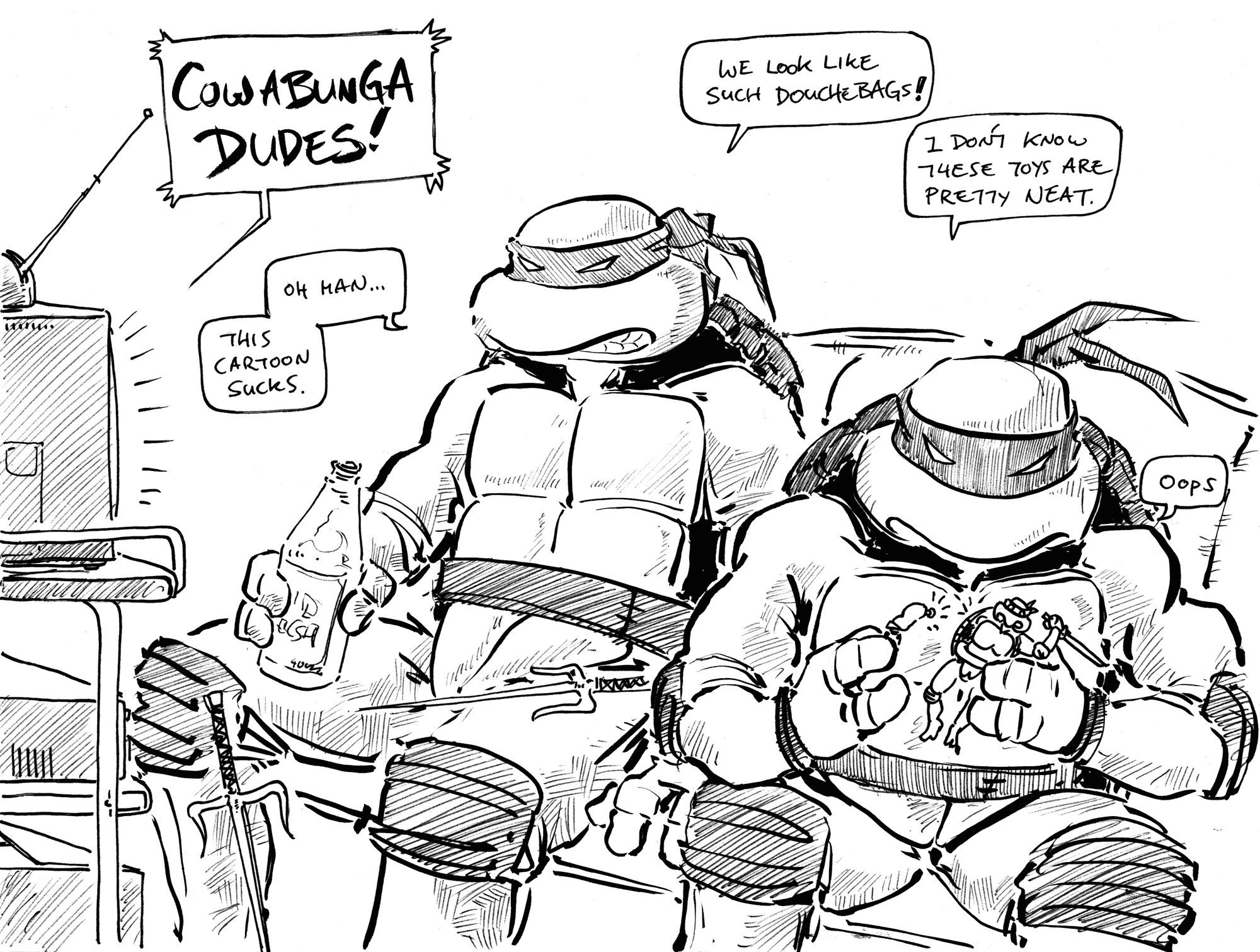 >>89050Bones was making a joke that it would be cool if the Turtles had reason to be involved in the big marvel event where Daredevil is now in charge of The Hand ninja clan and using them to build a giant ninja fortress to enforce law and order in the middle of the city.And since there's been lines of thought and crossover ideas that involve the TCRI ooze being the chemical that blinded Matt Murdok as a kid at the same time it dripped down into the sewer and mutated the turtles.